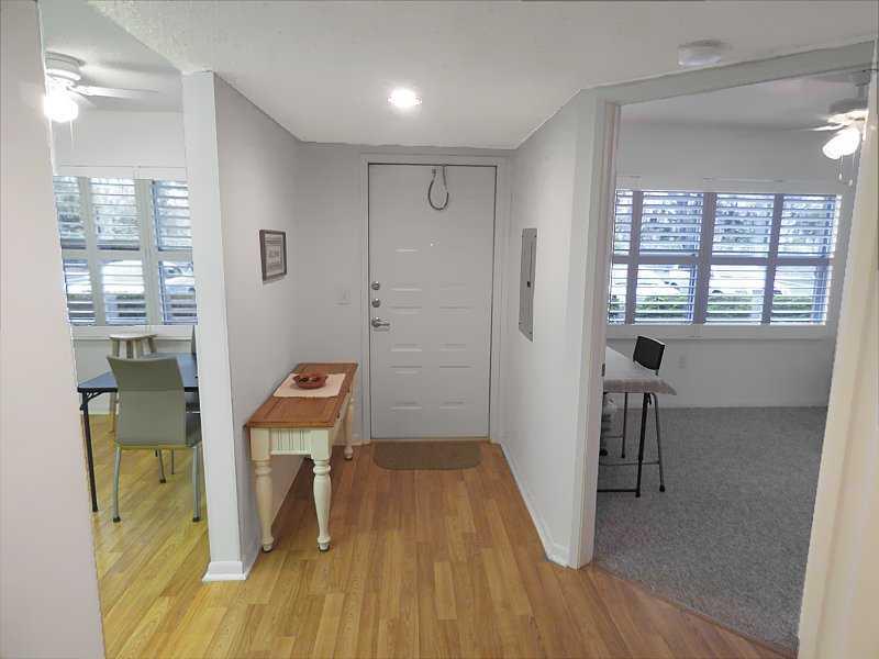 Very clean 1st floor unit. Newest section. Back door to pool. Redone kitchen, Laminate floors in kitchen and foyer. Bathroom tub& shower redone. New high toilets. New patio frame. Hurricane shutters throughout. Tankless hat water. Newer air cond. Plantat ion shutters. park in front. HOPA comm.Million dollar clubhouse, 2 fitness centers, 24 hr security, 8 swimming pools, bus transportation, tennis, movies, theatre, shows, billiards, pharmacy, cafe, golf, and much more. Near Pembroke Gardens and the mall.