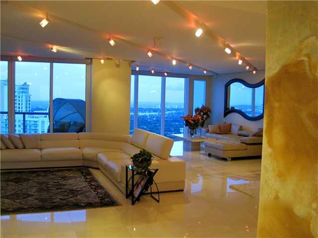SPECTACULAR 3 BEDROOM AND 3.5 BATH PENTHOUSE EQUIV. ON 5TH AVE TOWER IN LAS OLAS RIVERHOUSE WITH BALCONY VIEWS OF RIVER, OCEAN AND CITY. PRIVATE ELEVATOR, 15 FT ONYX LIT ENTRY WALL WITH FLOOR TO CEILING GLASS IN EVERY ROOM. CREMA MARFIL FLOORS AND UPGRADE D ROOMS. SLEEK KITCHEN W/ 3" BRECCIA VENDOME, MARBLE KITCHEN COUNTERS, MIELE APPLIANCES WITH 2 SUB-ZERO FRIDGES. REMOTE DESIGNER SHADES, ONYX IN ALL BATHROOMS & DESIGNER SINKS AND ACCESSORIES. 24 HOUR CONCIERGE AND VALLET PARKING. A MUST SEE NOW!!!!