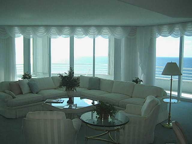 Very rarely on the market, SE unit on a high floor. Fully furnished except personal art and items. Large oceanfront suite in addition to oversized master bedroom. 2 zone A/C, 2 secure covered spaces. Totally white kitchen with wine chiller and separtate i ce machine. Media area just off living area. Furnishings are high end yet light weight for South Florida living. White sheers throughout the apartments. Bedroom have blackout curtains. Amost 800 sq. ft of wrap-around balcony. Pets welcome. Quick closing!