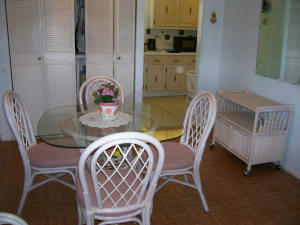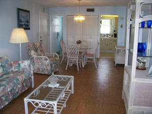 Move-in condition 2nd fl 1 BR/1.5BA. Window in the kitchen. Walk-in pantry has a stackable W/D. Screened patio w/storm shutters. Newer appliances. Short walk to Clubhouse. Some furniture for sale if buyer is intersted.