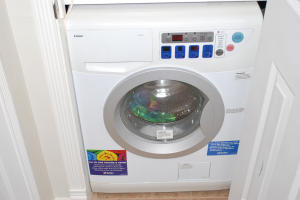 Nicely updated ground floor corner unit. Unit features tile throughout modern kitchen with dishwasher smooth top stove, matching fridge and built in microwave. Both bathrooms have been updated with the full bath featuring a step in shower. Unit also has a washer and dryer combo. There is even a small patio out back.