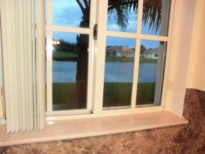Fantastic lake views from this beautiful end unit in resort-style community. Features accordion shutters, ext screened patio, screened entry, double car driveway. The interior is bright, vaulted ceiling, hi hats, upgraded cabinets, new AC, new hot water heater, freshly painted. Seller offers one year home warranty with American Home Shield. Pets welcome. Club Baywinds offers tons of fun w/its 6 har tru tennis courts, 3 heated swimming pools (1 is an aquatrac); hot spa, bocci courts, state of the art work out room, exercise room, media, card, billiards, meeting, library, wi-fi in clubhouse. Community close to beaches, golfing, shopping, hospitals, restaurants,PB Int'l airport, see more at www.baywindshoa.com. All sizes & fees approx.Pet Friendly.One year home warranty w/American Home Shield