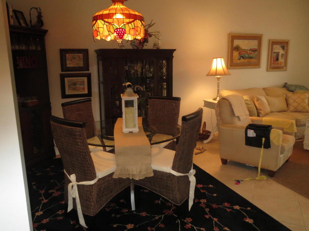 Immaculate, updated and ready to move into!! Nothing needs to be done in this spacious waterfront villa. The kitchen has been recently updated and has stainless appliances that are only a year old. The large eat-in kitchen has loads of cabinets and a pantry. The kitchen opens to the spacious dining room/living room and den/office. The living room has sliders out to the extended covered screened patio with a lovely view of the lake. The master also has a view of the lake and a large walk-in closet. The tile throughout is set on the diagonal. The hot water heater is new. The a/c is approximately 3 years old. Must see to appreciate. Dining room fixture and curtains do not convey.Furniture is negotiable.