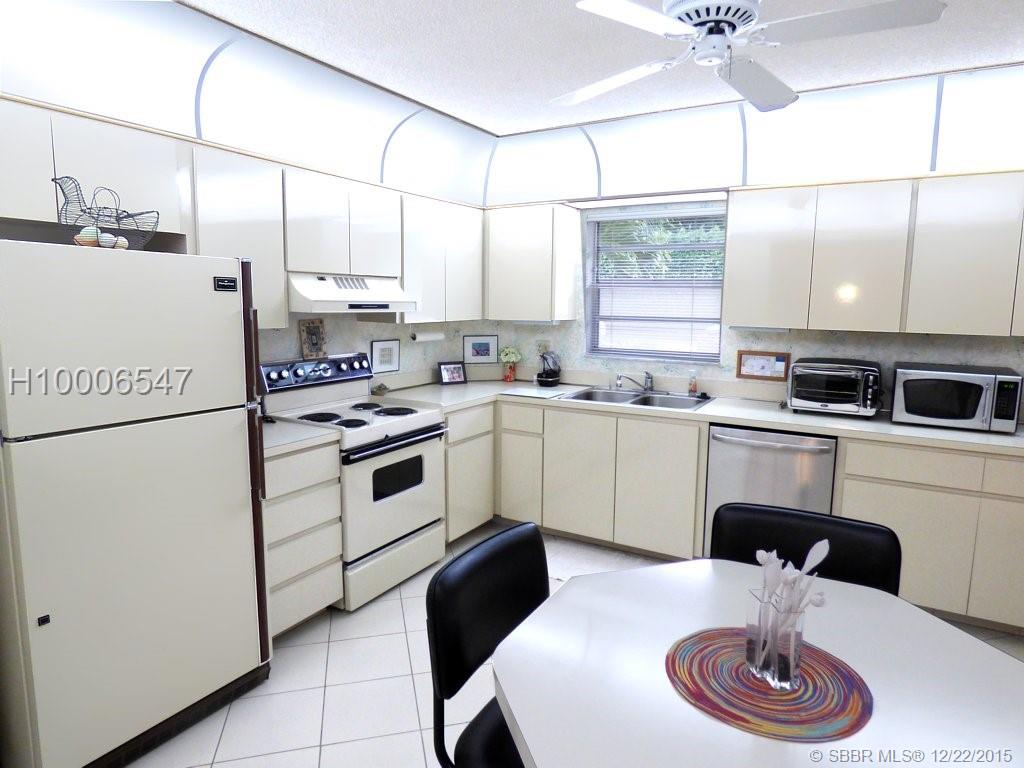 Large phase 6 unit on first floor. Very clean- looks like a model apartment. Walk out the back patio to the pool. Tile floors in kitchen & guest bedroom. Some furniture included if desired. Large walk in closet with built in shelves. Storm shutters. Full size washer/dryer. Paid up rec lease. Free golf , 14 tennis courts, 7 pools, theater, fitness center, restaurant , 24 hr security,. Assoc. represents housing for older persons (HOPA). IMPORTANT! See Broker Remarks below for occupancy qualifications.