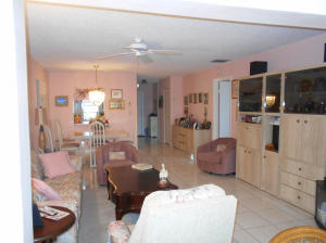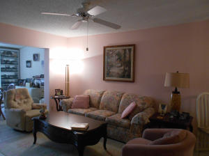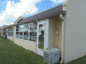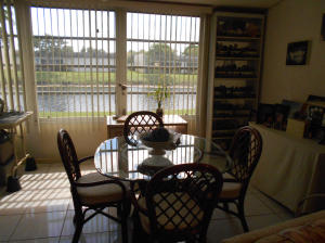 CORNER VILLA, NEXT DOOR TO LK REBECCA POOL, FULL 2/2 WITH LARGE PATIO MADE INTO FLORIDA ROOM WITH GLASS ENCLOSED HURRICANE IMPACT COATED WINDOWS & SAME LEVEL LIVING AREA. CERAMIC TILED FLOORS & LOTS OF NEW & NEWER. NEW REF, DISHWASHER & DISPOSAL 2014. NEWER WASHER & DRYER, RANGE & WTR HTR. BEAUTIFUL WATER VIEW ! FRONT ENTRY COVERED & CAN BE SCREENED ENCLOSED IF WANTED. LOCATED IN THIS GATED & SECURE COMMUNITY & THIS IS NEWER PHASE B. A SMALL DOG IS ALLOWED. THERE ARE TWO CLUBHSES, HEATED POOLS & SPA HOT TUB, GYM,TENNIS, BILLIARDS, CAFES FOR BREAKFAST & LUNCH. TWO SOCIAL DIRECTORS TO KEEP YOU BUSY & HAVING FUN ! LOCATED CLOSE TO SHOPPING, RESTAURANTS & TURNPIKE ! AIRPORT & OCEAN A SHORT DRIVE AWAY ALSO ! PARADISE AWAITS !!