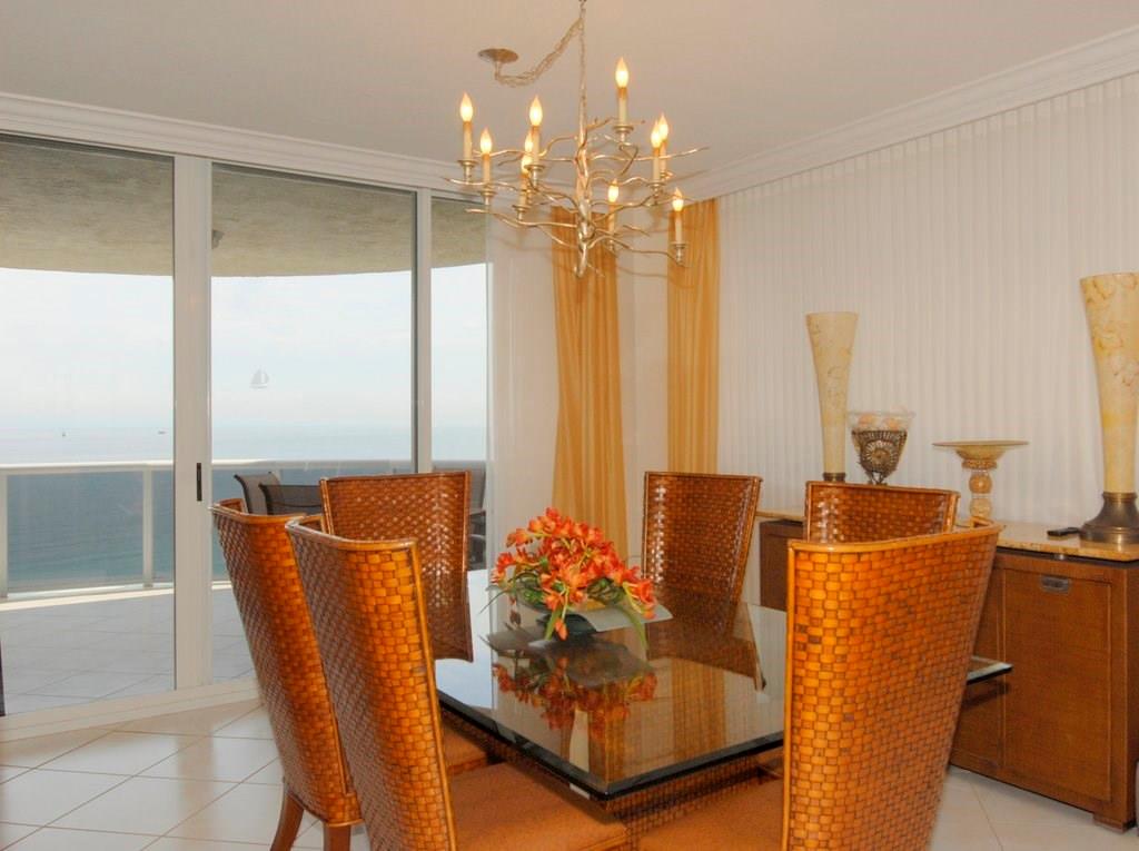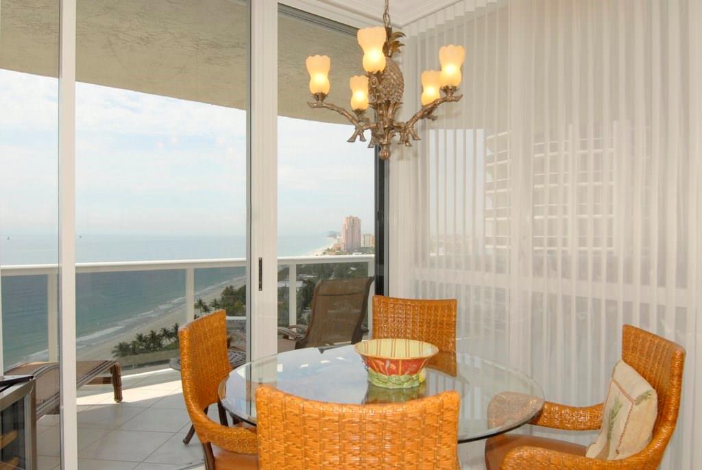 Double corner with Southeast Exposure. Panoramic views of coastline, tropical pool area , Ocean, city and tennis courts.. 3rd bedroom used as a den with french door entry. open kitchen. private elevator. Resort like complex w. tennis, café, concierge, private beach pavilion, pools, spas, pet park. 2 pets, any size OK