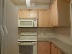 55+ active adult community. This first floor one bedroom, one bath has newer updates in kitchen and bath. Kitchen walls fully tiled, enclosed display space above solid wood cabinets. Newer matching appliances. This kitchen features plenty of cabinet space and counter top area. Tile floors through out. A walk in pantry with plenty of space. The updated bathroom has raised panel cabinets and vanity. Tiled walk-in shower has grab bars and built-in seat. The back patio is screened with a door to outside. This unique building is a non rental and non pet friendly building with a beautiful garden court-yard unlike any others in the Village. It is located in a quite area of the village and convenient to both gates.