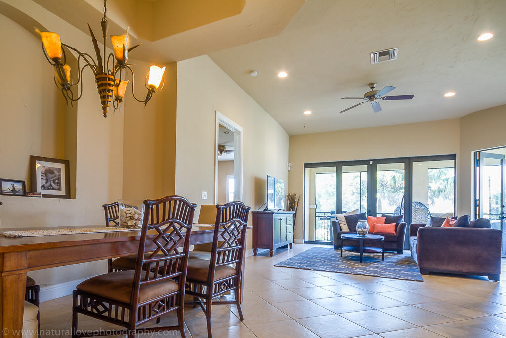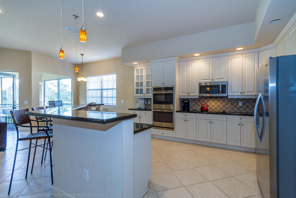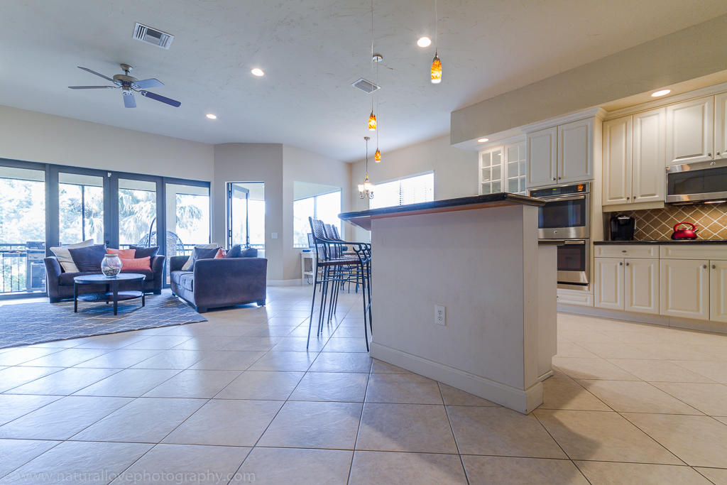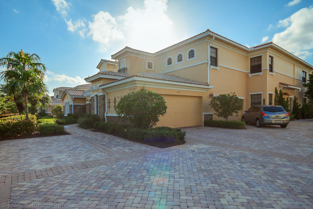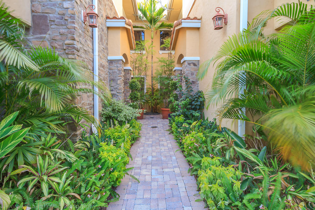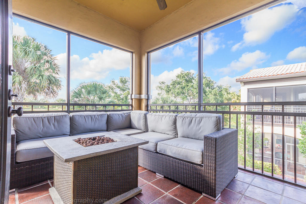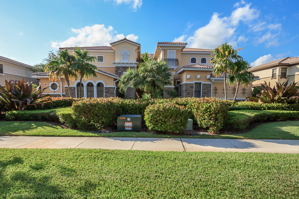 Gorgeous and immaculately maintained coach house styled condo with first floor entry and garage with either a stairway or your own private elevator to a spectacular and most sought after second floor living area comprising over 2,280 square feet with upgrades galore. The split 3-bedroom floor plan includes a 4th room, ideally suited as a private office. This desirable unit includes 10 ft. ceilings throughout with beautiful tile in the living areas and delightful carpeting in all bedrooms. The kitchen, family room and dining area are all laid out in a warm and generous open plan design creating a wonderfully spacious living space and perfectly suited for inside entertaining, or perhaps outside on the large screened enclosed patio balcony that enjoys golf course views. The spacious kitchen