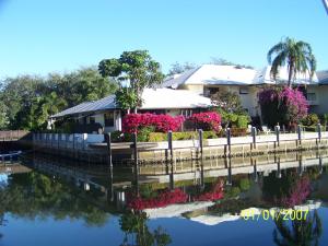 3/3 on Great Interior Corner Lot. SURROUNDED WITH 140 FT of WATER FRONTAGE, OVERLOOKING THE LUSH KNOLL AND GUEST DOCKS. So many Features - SATURNIA MARBLE FLOORS THROUGHOUT - Roof Replaced and 8 Impact Skylights Installed in 2009 - ALL ELECTRIC (WIRING/PANEL/BREAKERS/LIGHT FIXTURES/FANS), PLUMBING, 5 TON A/C COMPRESSOR AND HANDLER, HURRICANE GARAGE DOOR, CENTRAL VAC SYSTEM, TANKLESS HOT WATER SYSTEM, CEILINGS RAISED, ALL CLOSETS CUSTOM INSTALLED AND 3 BATHROOMS COMPLETELY REPLACED IN 2009 - Hurricane Accordian Shutters installed in 2005 - WHOLE HOUSE STANDBY GENERATOR installed in 2006 - New Fencing, Gate and Pavers for Side Patio Area Replaced - 50AMP SERVICE AND HOSE BIB AT YOUR DOCK LOCATED AT THE SIDE DECK OF THE HOME. Community is Gorgeous!