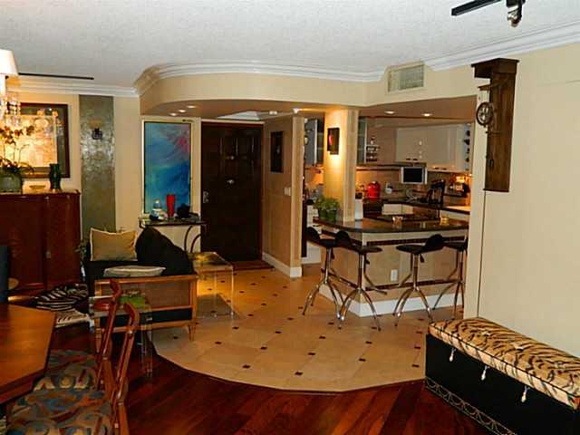 Gorgeous designer updated condo with German Poggen Pohl kitchen, porcelain tile floors including large balcony and wood floors. Hurricane and sun shutters for balcony, granite counters in bathrooms. Open kitchen design open out to dining and living areas . Ceiling designs, cove lighting throughout. A/C is year old and tankless hot water heater about 2 years old. Corner unit. Chandeliers, sconces, drapes and bidet toilet seat are NOT included in sale. Mulitple offers - accepting offers until 3/13 - 6 pm