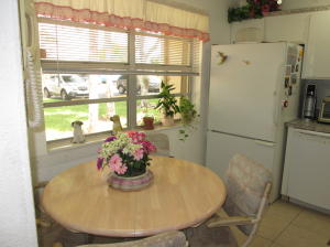Corner 2/2 Villa with formal dining area. Many updates. Enclosed patio w/sliding glass doors, tile and laminate floors, full size W/D, all knock down finish on interior walls, updated eat-in kitchen. Short dead-end street w/a short walk to satellite Pool. Accordion hurricane shutters on all openings. Some furniture may be available for sale. Active 55+ guard gated community. One occupant must be 55+. No dogs allowed in Phase A only max of 2 indoor cats. Cash or conventional financing only per assoc.