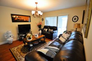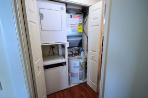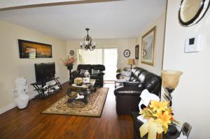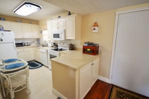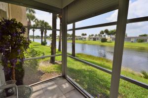 Located on first floor, easy wheelchair access, strait from assigned parking. Dryer and washer inside unit. Condo is freshly renovated, central A/C and water heater(2011). Laminated floors thought-out living area and carpeting in bedrooms. New kitchen cabinets and countertops, split floor plan and open kitchen to dining room area. Condo has lake view and tiled porch with hurricane shutters. All tastefully decorated and excellent moving-in conditions. This is 55+ Community with great amenities and convenient location. Community allow small pets and features :clubhouse, pool, transportation and social activities. If you are looking for a secure environment with many amenities and scheduled activities, this is an ideal destination for you or your client.