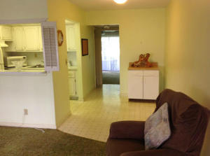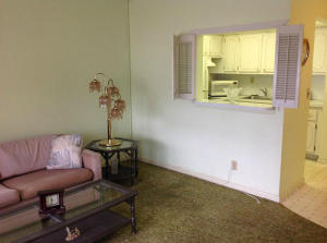 Charming 1 BR/1 BA First Floor unit available in the sought after Kingswood Community. This bright unit opens up to the cozy living area with convenient pass thru to kitchen. Spacious bedroom has access to the screened in patio which overlooks a lush, green garden area courtyard. Century Village, a 55+ community features a host of amenities that include - swimming pools, sauna, fitness center, plays, movies, performances, shuttle service & much, more, even a pharmacy on premises. Why not experience true resort living in the heart of West Palm Beach. Close to shopping, dining & entertainment. Minutes from Palm Beach International Airport. (all measurements approximate)