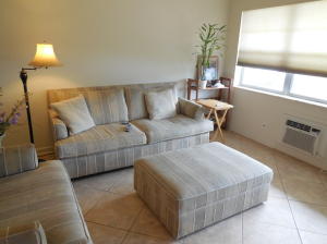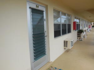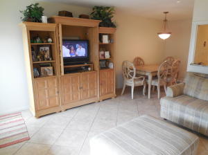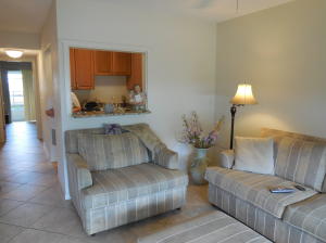 Recently updated! Beautiful 18-inch ceramic tile laid on diagonal pattern, ceiling and walls are knock-down, and raised panel doors. Kitchen features solid wood cabinets, granite counter tops, deep sink and an over the range microwave. Bathroom has a walk-in shower and comfort height toilet. Large bedroom has full wall length closet and walk out sliding glass doors to an enclosed air conditioned patio. Unfurnished. Parking right in front of condo, very short walk to front door. Close to Okeechobee Blvd entrance gate.