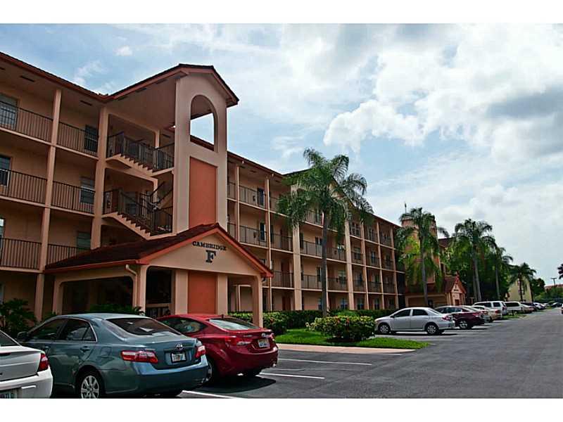 Opportunity to own a nice unit overlooking the golf course in Cambridge F at Century Village! Well maintained by original owner and ready for your personal touch! This 2BR/2BA features foyer entry, galley kitchen with pantry, breakfast nook, dining/family room, and split bedrooms. Master has view of golf and large walk-in closet. Washer/dryer in unit! New water heater. Service America contract can be transferred. Pool right across the street! Parking spot close to elevator. Estate sale. Bring all offers!
