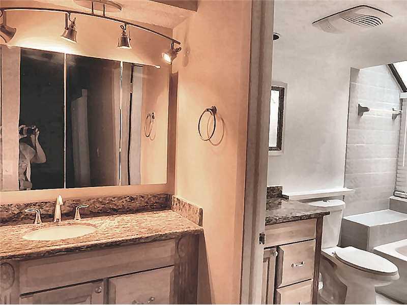 BEAUTIFULLY UPDATED, WITH LIGHT, LARGE TILE THROUGHOUT LIVING AREA AND FIRST BEDROOM. WOOD CABINETS TO CEILING, PANTRY, CORION COUNTERS, TILE BACKSPLASH, UPDATED APPLIANCES.REFRIGERATOR HAS BOTTOM DRAWER FREEZER & ICEMAKER. MASTER BATHROOM UPDATED WITH WO OD CABINETS ,GRANITE COUNTERS. 2ND BATHROOM, WOOD CABINET, GREEN GLASS COUNTER &SINK & MATCHING FAUCET. 2ND BEDROOM, WOOD LAMINATE FLOORS & BUILT IN MURPHY BED BEHIND SLIDING BOOKSHELVES. MASTER BEDROOM VAULTED CEILINGS,WOOD LAMINATE.LARGE SCREENED PATIO.