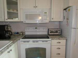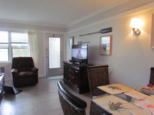 A completely remodeled 1st floor unit in active over 55 community. From top to bottom all done over into an open floor plan, kitchen, dining & living room together. Beautifully decorated & added decorative wainscoting. Flooring throughout is all tile with a bleached wood look. Large closet in hallway & bedroom closet has two access doors. Bath has large counter & walk in shower. There is an additional enclosed space off of the bedroom that is great for lounging or use as an office space with a regular back door leading out to your parking area. There is a dehumidifier in place to keep your home dry. Right outside the front door is shared open patio & laundry room. Century Village has many amenities,large clubhouse, theater, party room, library, pools, fitness center & courtesy buses.