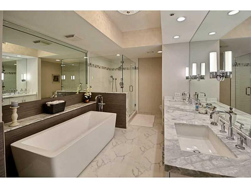 Beautiful Direct Ocean front Condo has just completed renovations including a spectacular new Master Bath featuring a soaking tub, Carrera marble, and contemporary lighting. New sliding modern doors and a Murphy Bed/Sofa allow the den to be comfortably co nverted to a 3rd bedroom. Private elevator entryway, Marble and Wood floors. New w/d & lighting fixtures. L'Hermitage is a pet friendly bldg. featuring 3 pools, cafe, tennis, Gated entrance, valet, concierge, fitness & business center. Easy to show!