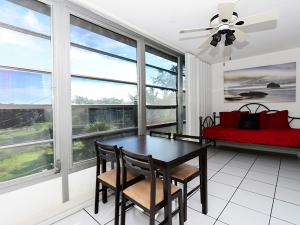 Penthouse corner unit; Rarely available. Lots of Windows; Light and Bright! Fully furnished. Updated, large tiled enclosed patio. Pool is short walking distance. Close to all shopping, Beautiful CityPlace, restaurants, etc. Bus service. Great Building. A must see for the Century Village buyer who wants it all!