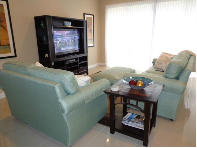 Beautiful and immaculate unit. Used only as a vacation home. Peaceful view of quiet lagoon with natural landscaping. The unit has 42 inch warm wood cabinets with granite counters and top of the line appliances. Custom window treatments make this home espe cially inviting. There is an expanded closet in the third bedroom to accomodate golf clubs for the avid athelete. The garage has been fitted with extra shelving for all of your out of season treasures. This home can be the perfect choice for you.
