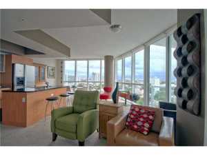 15th floor, 2007 construction, boutique-style condo with Biscayne Bay and downtown views. Highlighted by floor-to-ceiling, new-construction-standard, hurricane-proof glass. Each section has indepently-operated, retractable, opaque window blinds. Perfect for day or evening views, especially when you include the wrap-around, spacious balcony, with access from the livingroom, master bedroom, and den.? The balcony also features the same, hurricane-proof, clear-view panels. Enter the corner-unit, curved condo through a private foyer to an open kitchen, dining room,? family room and den area.? A separate hallway leads to the master bed/bath room, second bed and bathroom, and washer/dryer. The master bedroom boasts floor-to ceiling glass panels, with independ... (see supplement for full remarks)