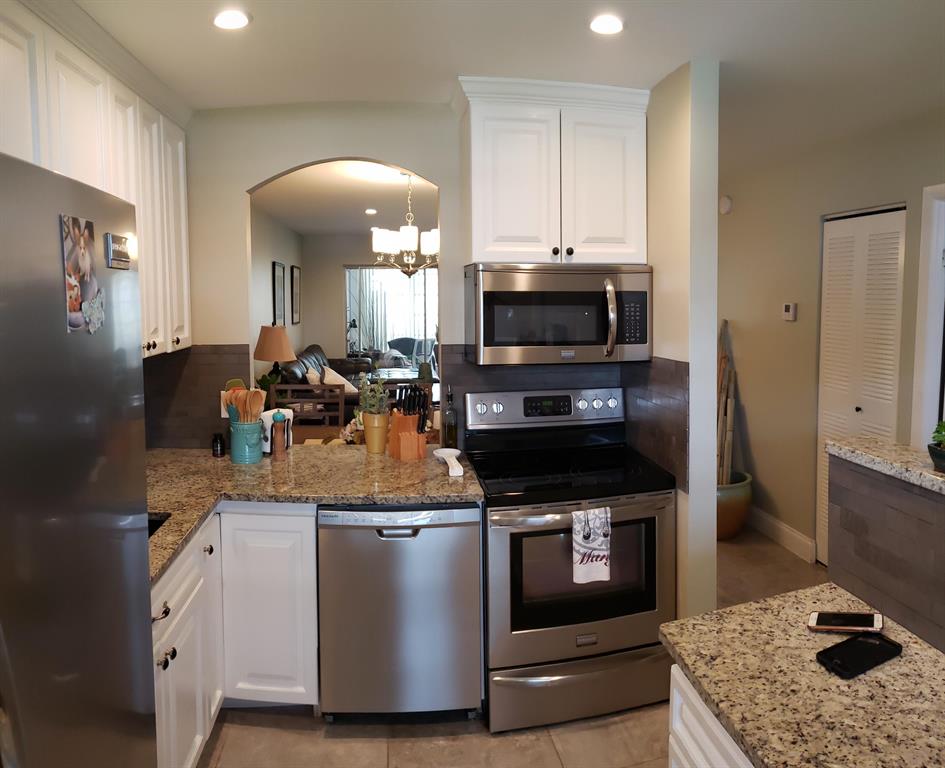 Beautiful 2/2 villa recently upgraded with new kitchen, bathrooms, tile floors, and freshly painted. The condo includes washer and dryer hook ups and a beautiful lakeview from the enclosed porch. Golden Lakes is a guarded gated community with many amenities and activities - clubhouses, pools, gym, hot tubs, and a cafe.