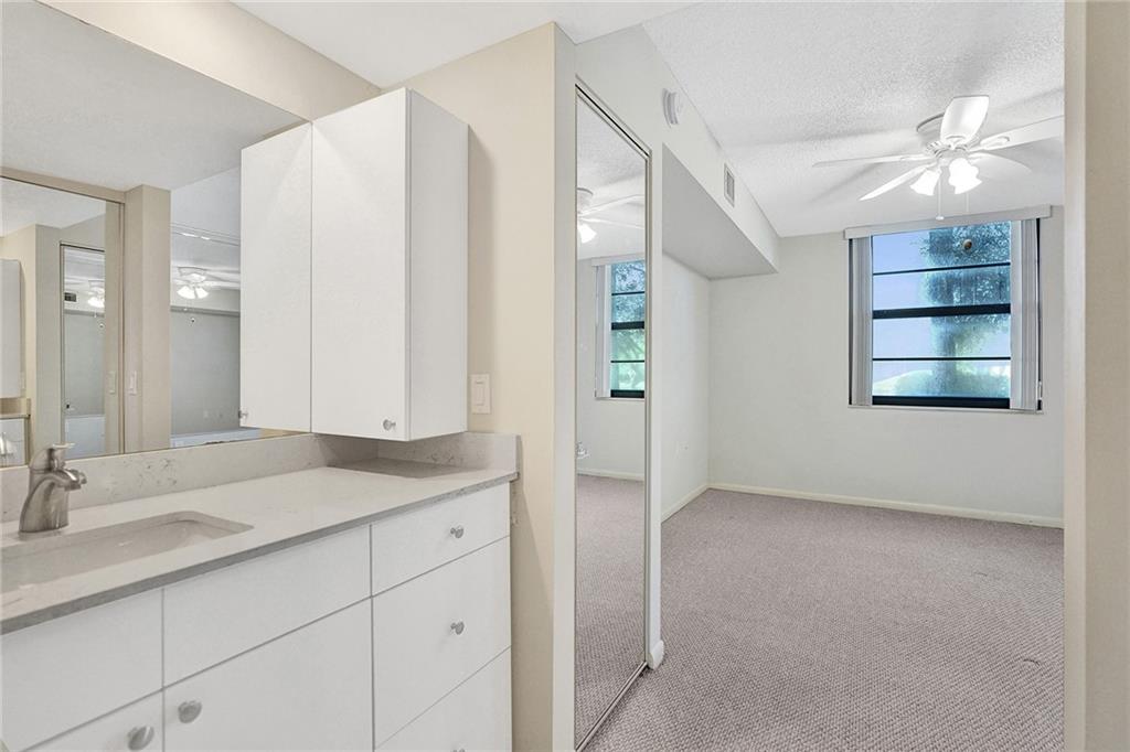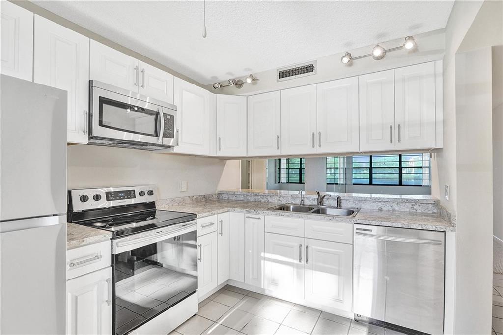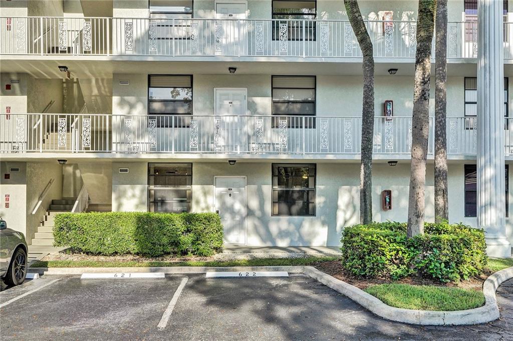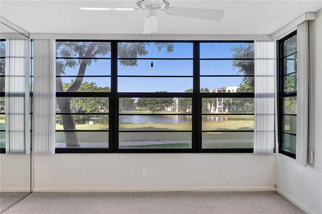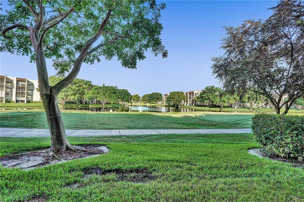 A very spacious and bright 2 bedrooms 2 bathrooms ground floor unit with a gorgeous lagoon view at the private country club community at the heart of Davie. The apartment features renovated kitchen with new stainless steel appliances, impact windows in the living room and master bedroom, A/C is 2 years old, separate utility room with full size washer and dryer also 2 years old. Extra room can be used as an office/den. Large master bedroom with a huge walk-in closet. All windows have new verticals. This unit has lots of storage room. One parking space assigned right out the front door. Country club community offers 2 restaurants, party/game room, fitness center, park, pool, tennis and sauna/steam. Golf membership available. Centrally located, near highways. Okay to lease 1st year!