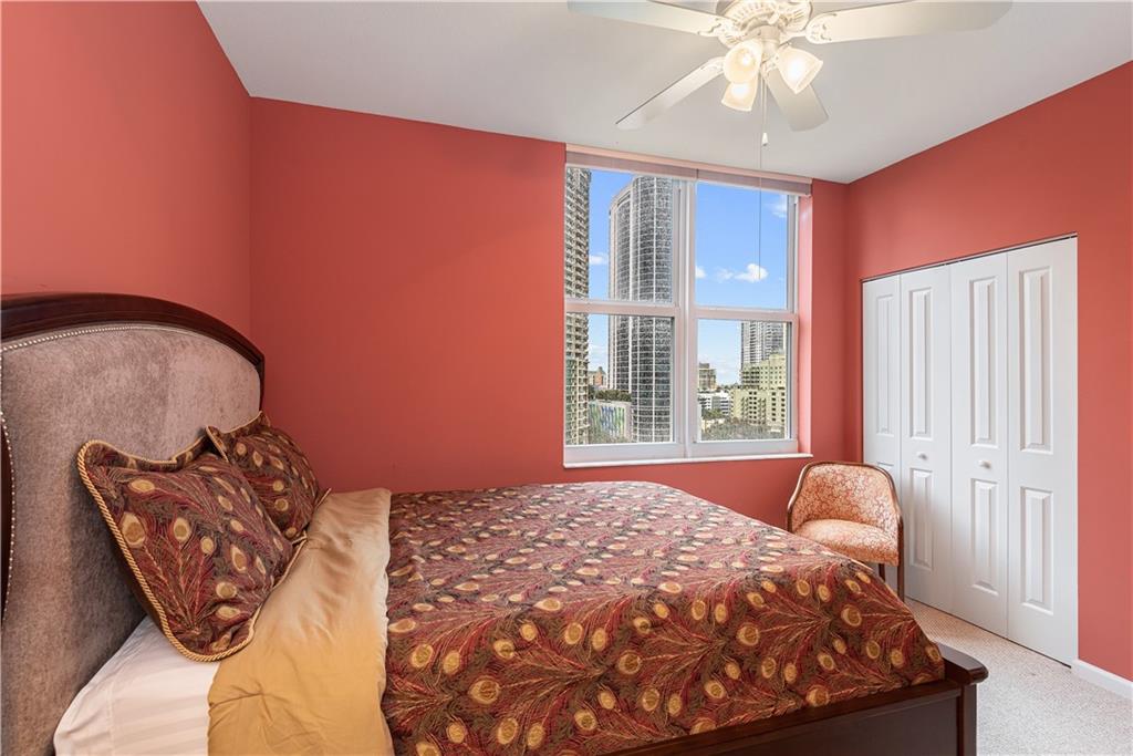 This 3 bedroom/2 bath, corner residence faces north directly on the New River. Sit on your private balcony and enjoy your morning coffee or evening cocktail while you watch the boats go by in the heart of downtown Fort Lauderdale. Spacious open concept floorplan is perfect for entertaining. This kitchen features a picture window, stone countertop/backsplash, modern Italian shaker style cabinetry and stainless steel appliances. Owner’s en-suite has an oversized vanity w/ dual sinks & roman tub/shower. 2 guest bedrooms face the river and welcome guests or makes for a spacious home office or nursery depending on your needs. Laundry room w/ front loader washer/dryer with plenty of available space for cleaning supply storage.