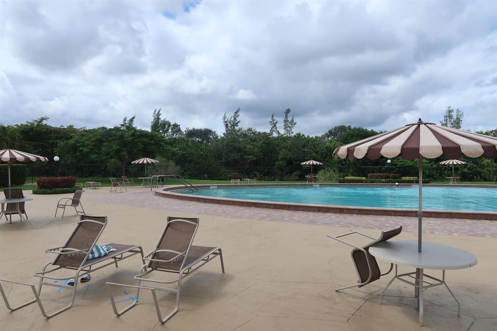 This is your winter getaway, inexpensive, comfortable condo in the awsome Century Village community. So much to do, so many amenities and it's warm all winter. This 1/1 has tiled floor throughout, a large utility closet and huge patio overlooking a green space. No one above you, private and no noise or footsteps.Step out out the door and the large swimming pool area is within view.Clean and ready for new owners.Make an offer, this could be your home by winter.2 AC units, bedroom unit is fairly new.