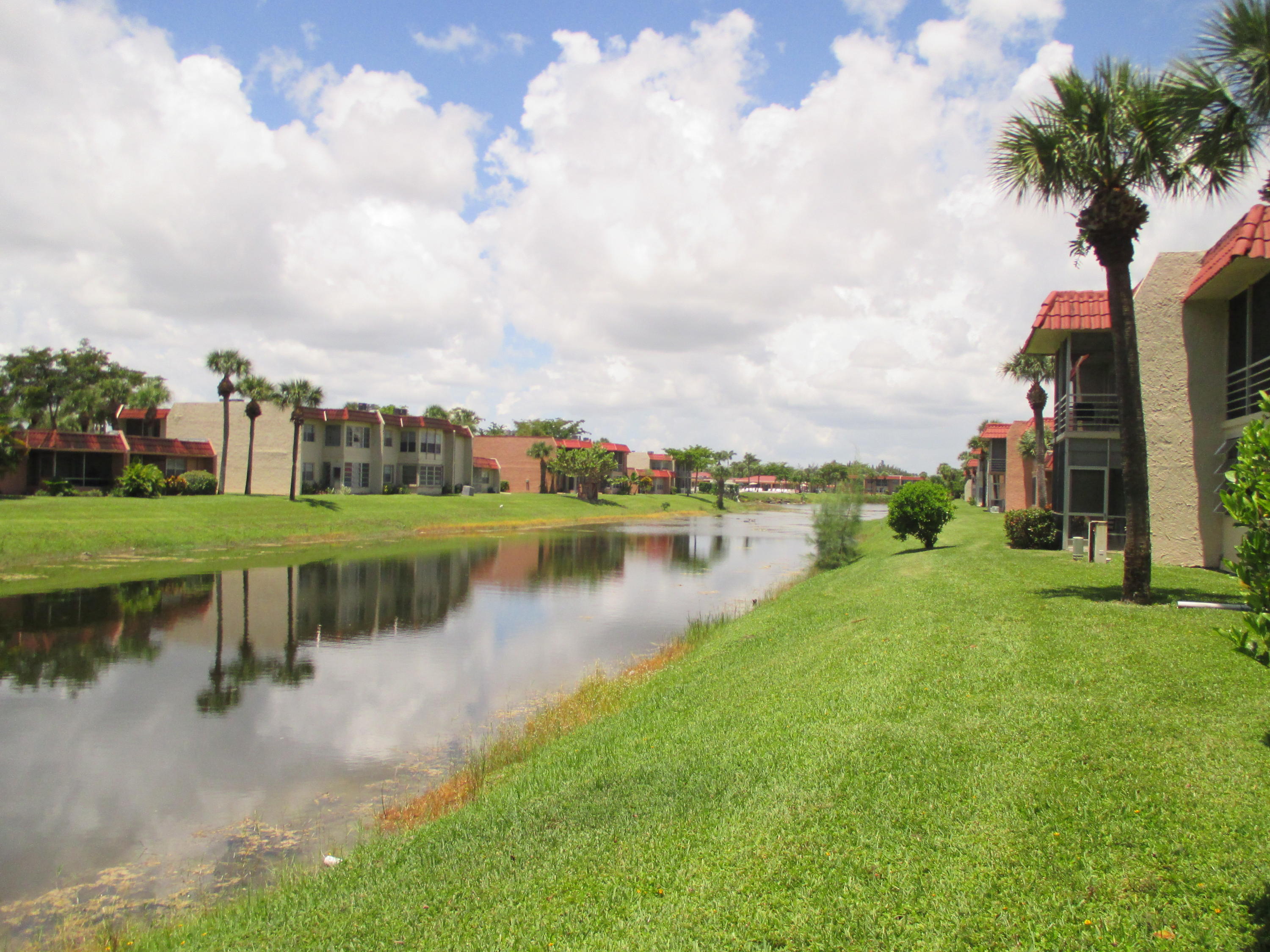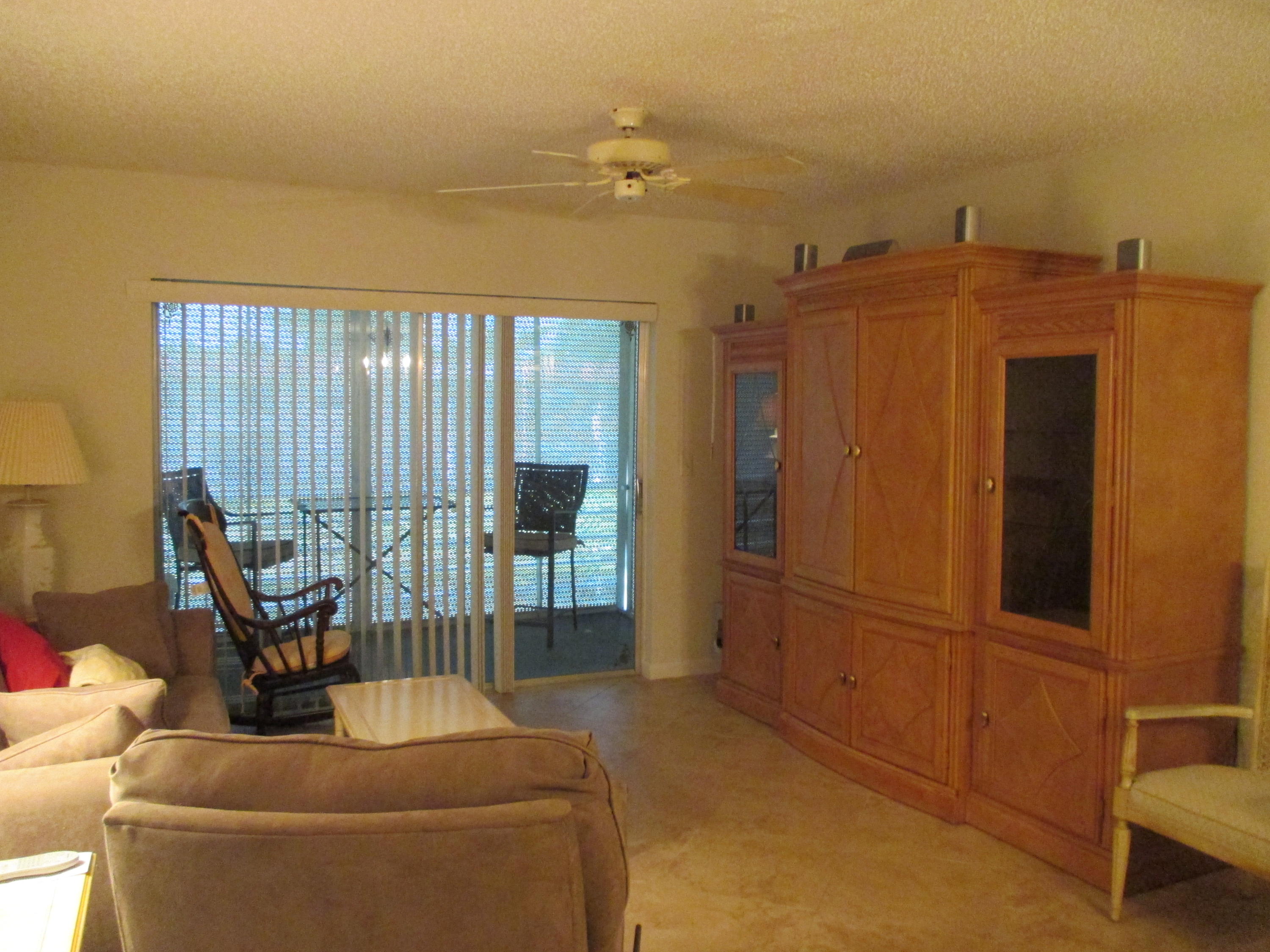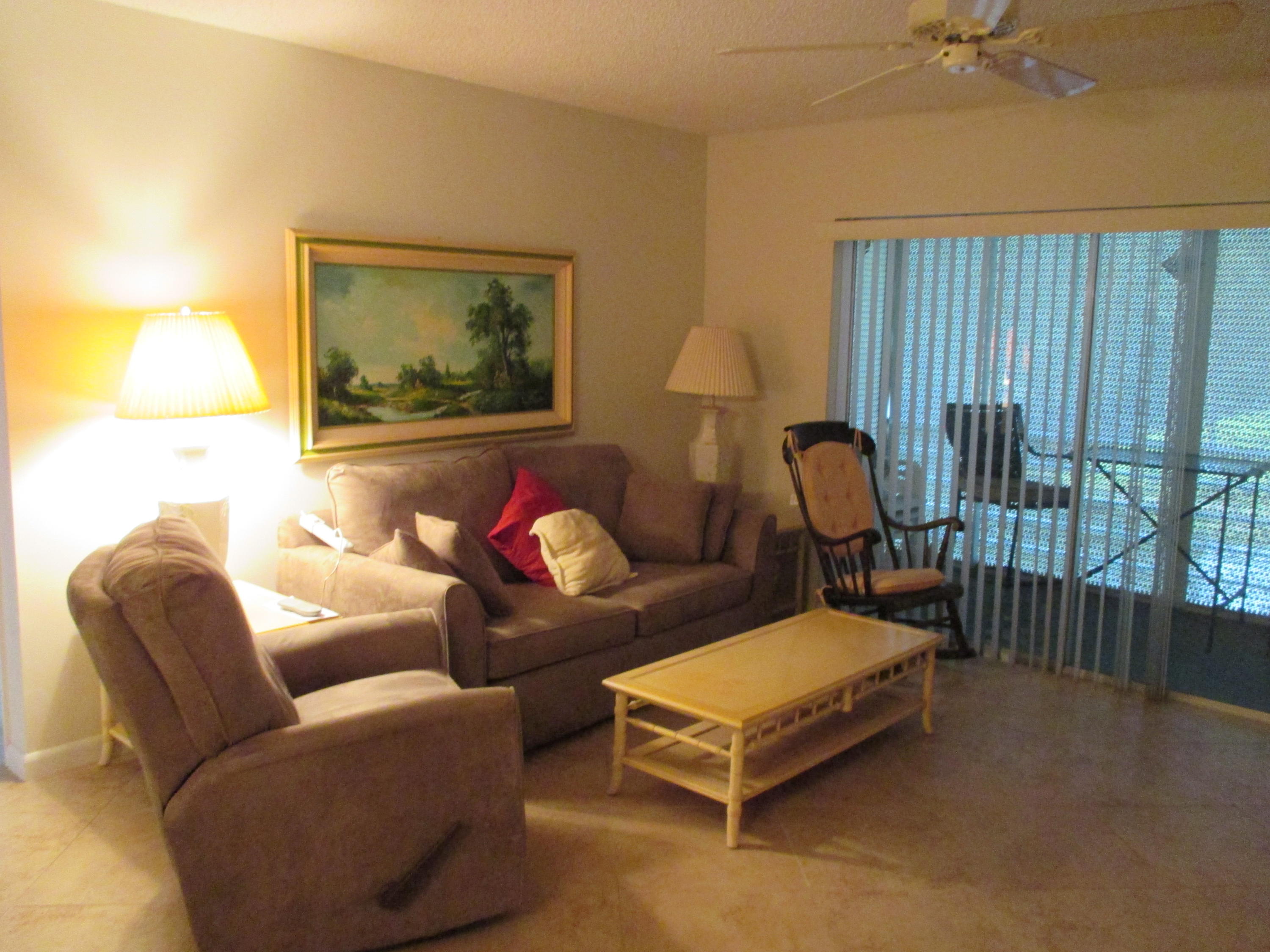 Bright 2nd fl full 2/2. A/C only 2 yrs old, all tile floors. Roll up storm shutters on screened patio. Offered with or without furniture. Active 55+ guard gated community. Full time social director schedules shows, trips, movies etc. Large heated Pool, hot tub, Bocce Ball court. Many social clubs to keep you active. Courtesy Bus 2 days a week to grocery, malls, shops.On-site manager M-F. Come discover Golden Lakes Village.
