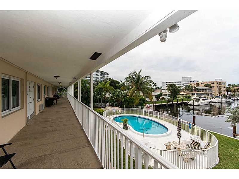 LOCATION! LOCATION! LOCATION! Enjoy sitting by your beautiful pool and watching the yachts go by on the INTRACOASTAL... Very close to BEACHES....1 bedroom 1 bath plus large den that can be converted to a bedroom if needed. End unit on second floor...Sit outside your door and see the gorgeous view of canal and intracoastal..Watch the sunsets..Unit needs a lot of work...very quiet 12 unit complex..well maintained.. Hurricane impact windows.One parking spot 206...two guest spot