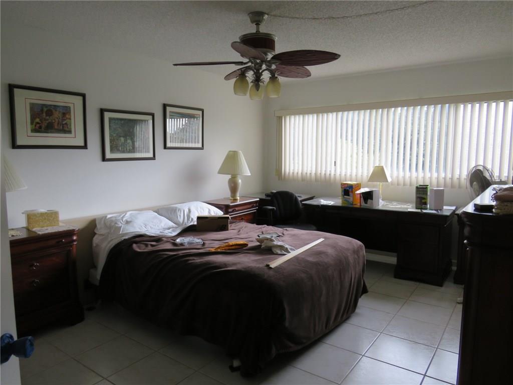 Spacious unit with pleasant garden views. Large,light tile throughout, including both bedroooms. White cabinets in kitchen, newer refrigerator. Patio has glass and can be opened with screens. Storm shutters on patio also. Generous walk in closet in master bedroom with full closet system.