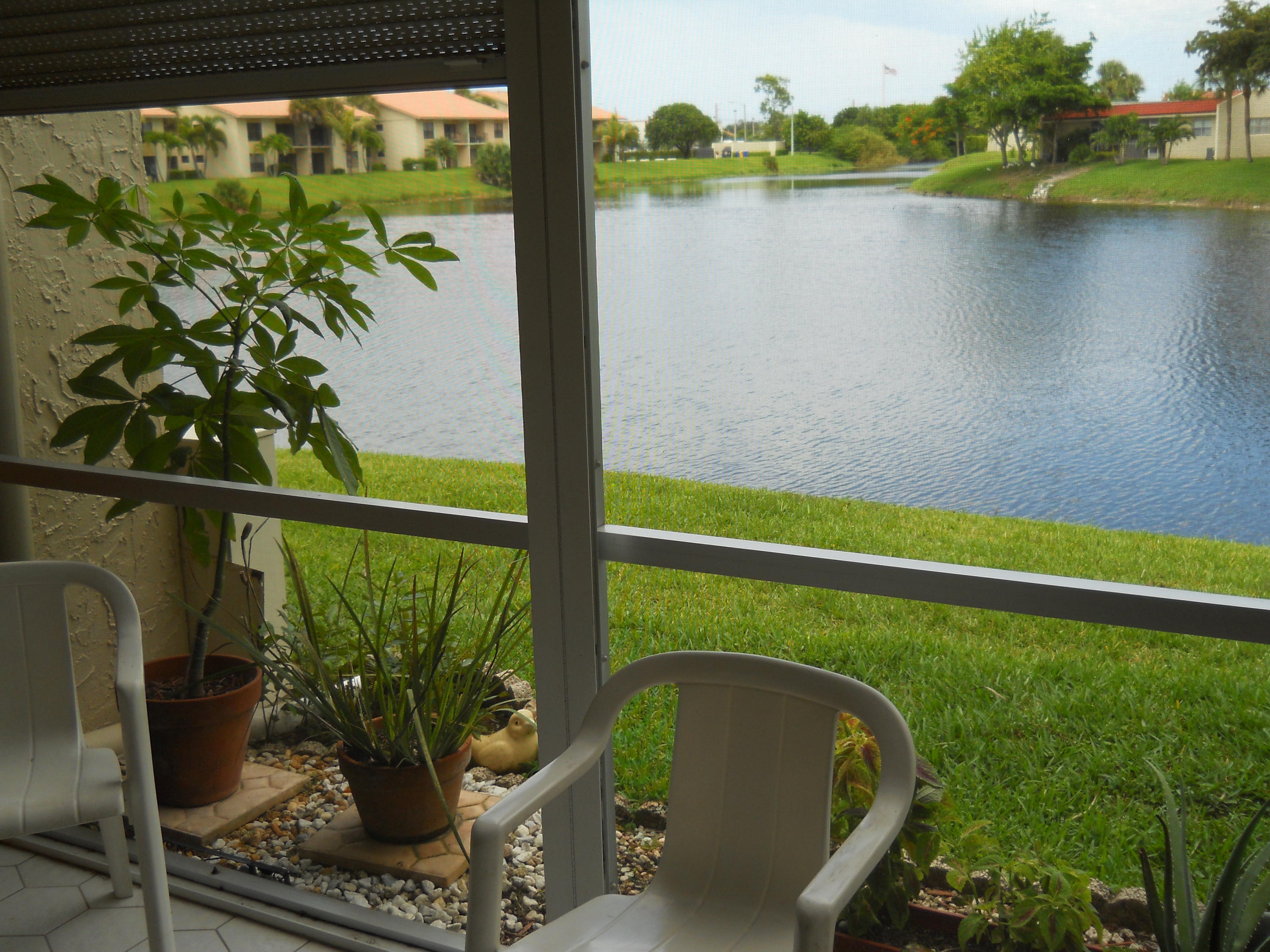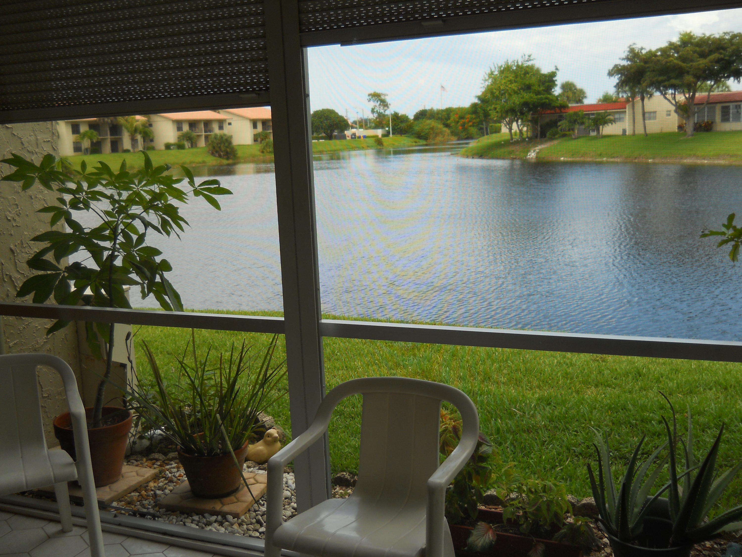 LOVELY 1ST FLOOR APT, HAS BEAUTIFUL WATER VIEW ! FULL TWO BEDRM, TWO BATH, ALL TILED FLOORS, SPACIOUS FLOOR PLAN, WASHER & DRYER IN LARGE INSIDE UTILITY CLOSET! UPDATED BATHS, LOTS OF UPDATES ! SOME FURNITURE AVAILABLE. ROLL DOWN SHUTTERS ON PATIO. HAS EXTRA OUTSIDE STORAGE ! GREAT LOCATION ! CLOSE TO MAIL ROOM, STORAGE RM, COURTESY BUS STOP ! MANY AMENITIES IN THIS GUARD GATED COMMUNITY.TWO CLUBHSES, POOLS,SPA HOT TUBS, GYMS, CAFES FOR BREAKFAST & LUNCH, TWO ACTIVITY DIRECTORS TO KEEP YOU BUSY & HAVING FUN WITH CARDS, SHOWS, TRIPS, DINNER DANCES, BINGO, SOMETHING FOR EVERYONE ! LOCATED CLOSE TO SHOPPING, RESTAURANTS & TURNPIKE ! AIRPORT & OCEAN A SHORT DRIVE AWAY ALSO ! PARADISE AWAITS !!