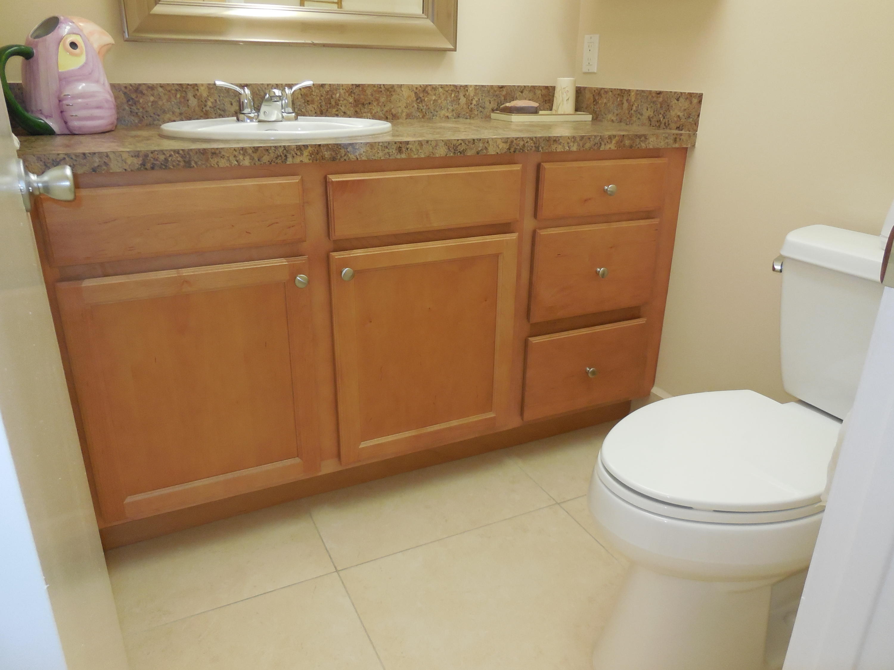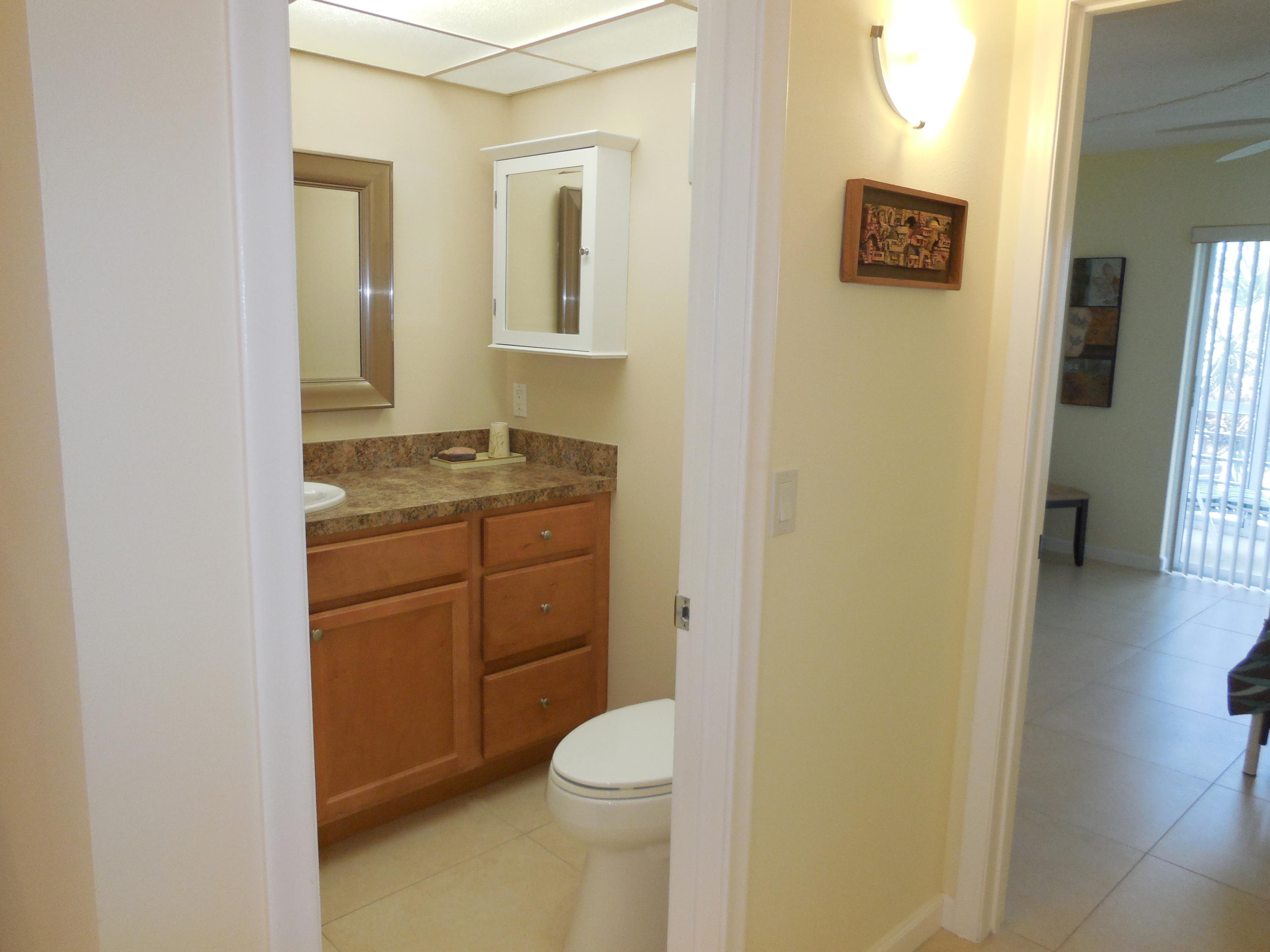 You must see this professionally renovated one bedroom, one and one half bathroom, penthouse condo. Enjoy beautiful water views of the lake from a comfortable screened lanai. A short walk to either of Wellington Federation resident-only pools. Total renovation completed in 2011. 24 inch ceramic tile was laid throughout entire condo with baseboard, all light switches and outlets were replaced, and the electric hot water heater was replaced. A double sink, tile backsplash, solid wood cabinets and white appliances were added in the kitchen. Matching solid wood vanities, comfort height toilets, and tile tub surround in bathrooms were also added. This unit also features central A/C with a humidistat. Enjoy wonderful views and tropical trade winds from this top floor sanctuary.