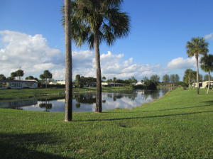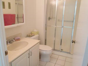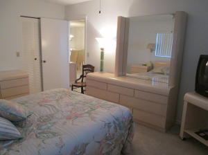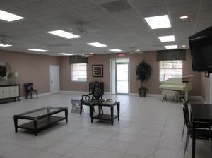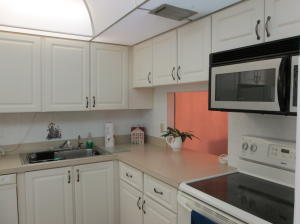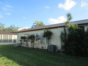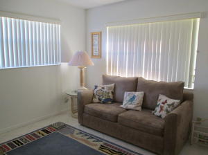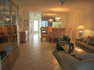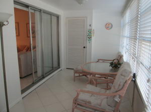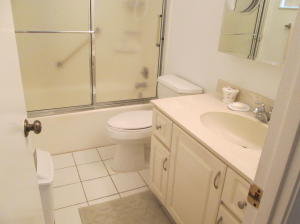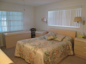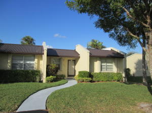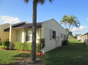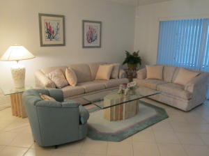 Corner 2/2 Villa with enclosed patio and accordion hurricane shutters on all windows. All tile floors, carpet in master bedroom. New kitchen counter and kitchen doors. New bathroom vanities. Can be sold ''turn key''. Active 55+ guard gated community. (one occupant must be 55+) Limit 2 vehicles. Courtesy bus two days a week to grocery, malls, shops etc. Approx 15 min to downtown West Palm, City Place and Kravis Center for Performing Arts.