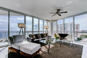 Wow! Let the sun shine! Like being on a cruise ship!! Enter and experience the style, space and energy of Unit 1506. A stunning contemporary sky residence of truly unique architectural design. This 2 bedroom plus den/2.5 bath sky residence with designer finishes boasts 2,108 sq. ft. of air conditioned living space. Private elevator access leads into a dramatic double-door foyer entryway. The great room opens to a spacious flow thru plan with floor-to-ceiling glass and sliders and a terrace to fully capture the panoramic unobstructed ocean view. Outside, the over-sized glass paneled terrace provides tremendous views and expansive outdoor living space. Back inside, the spacious island kitchen has an extra long dining bar and overlooks the grand salon. The European designed gourmet kitch