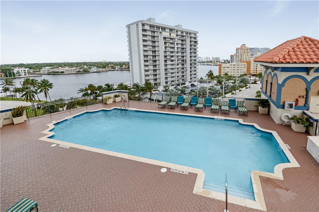 Stunning NE Corner Unit w/1,125 sq ft wrap-around balcony; 2 bdrm + Den (3rd Bdrm) & 2.5 baths w/2 parking spaces—Fantastic, expansive views of ocean, Intracoastal & pool w/floor to ceiling windows & sliders; Private elevator & foyer; marble floors; split -floor plan; laundry room—The majestic Jackson Towers amenities include lobby attendant, valet, fitness center, clubhouse, pool/spa, library, billiards, pet friendly (2 dogs any size)—short distance to beach, restaurants, shopping and Las Olas Blvd!