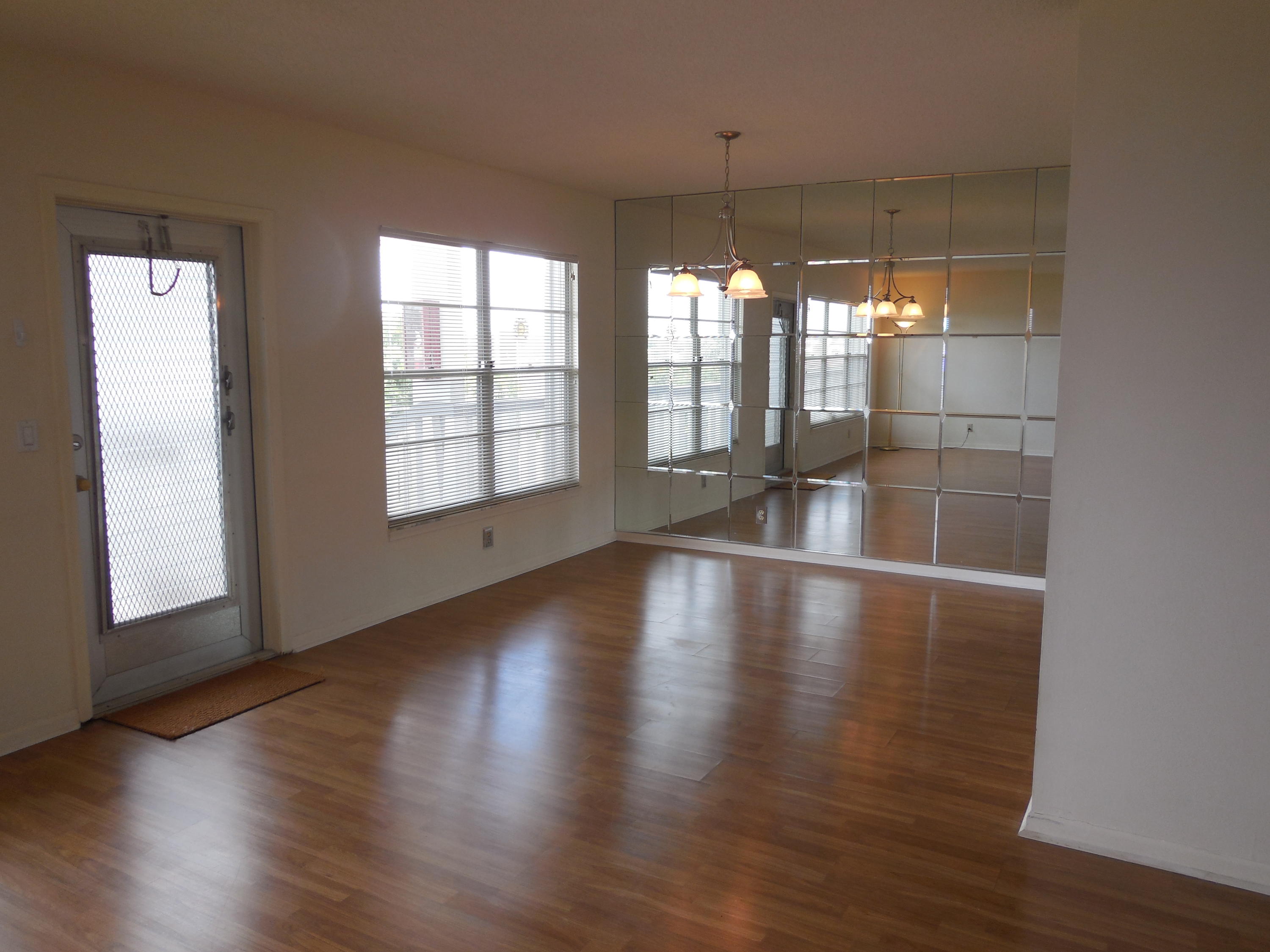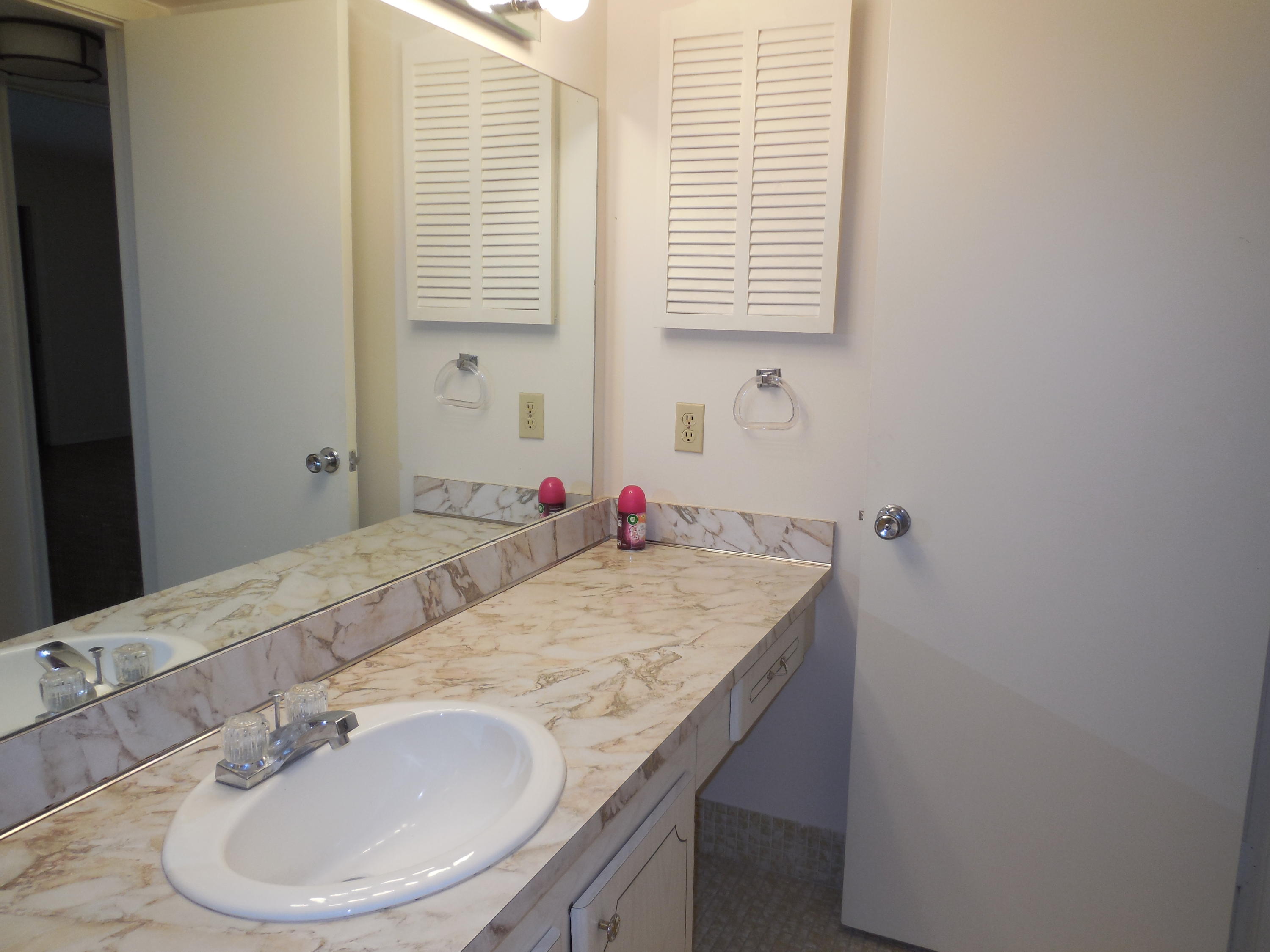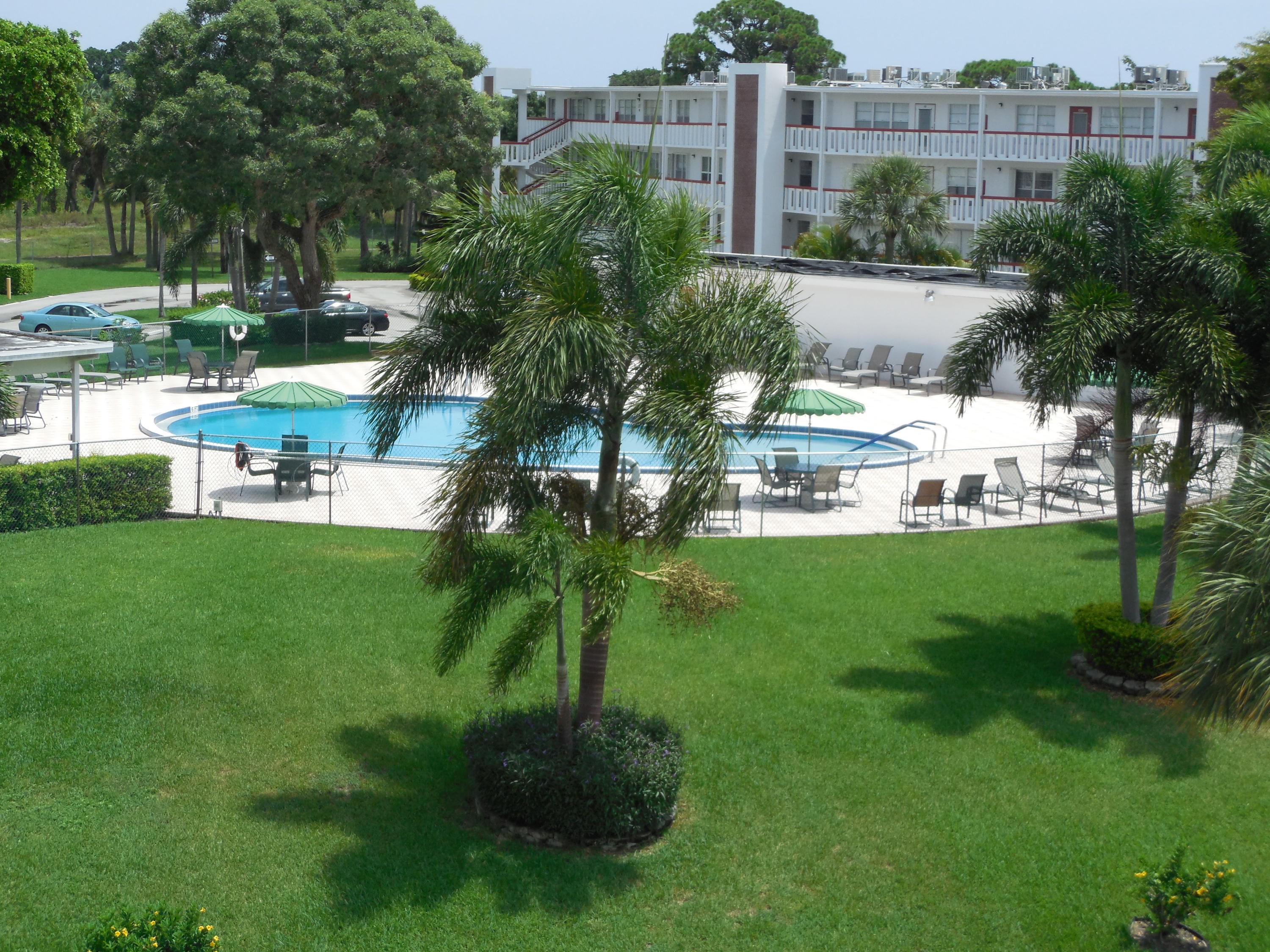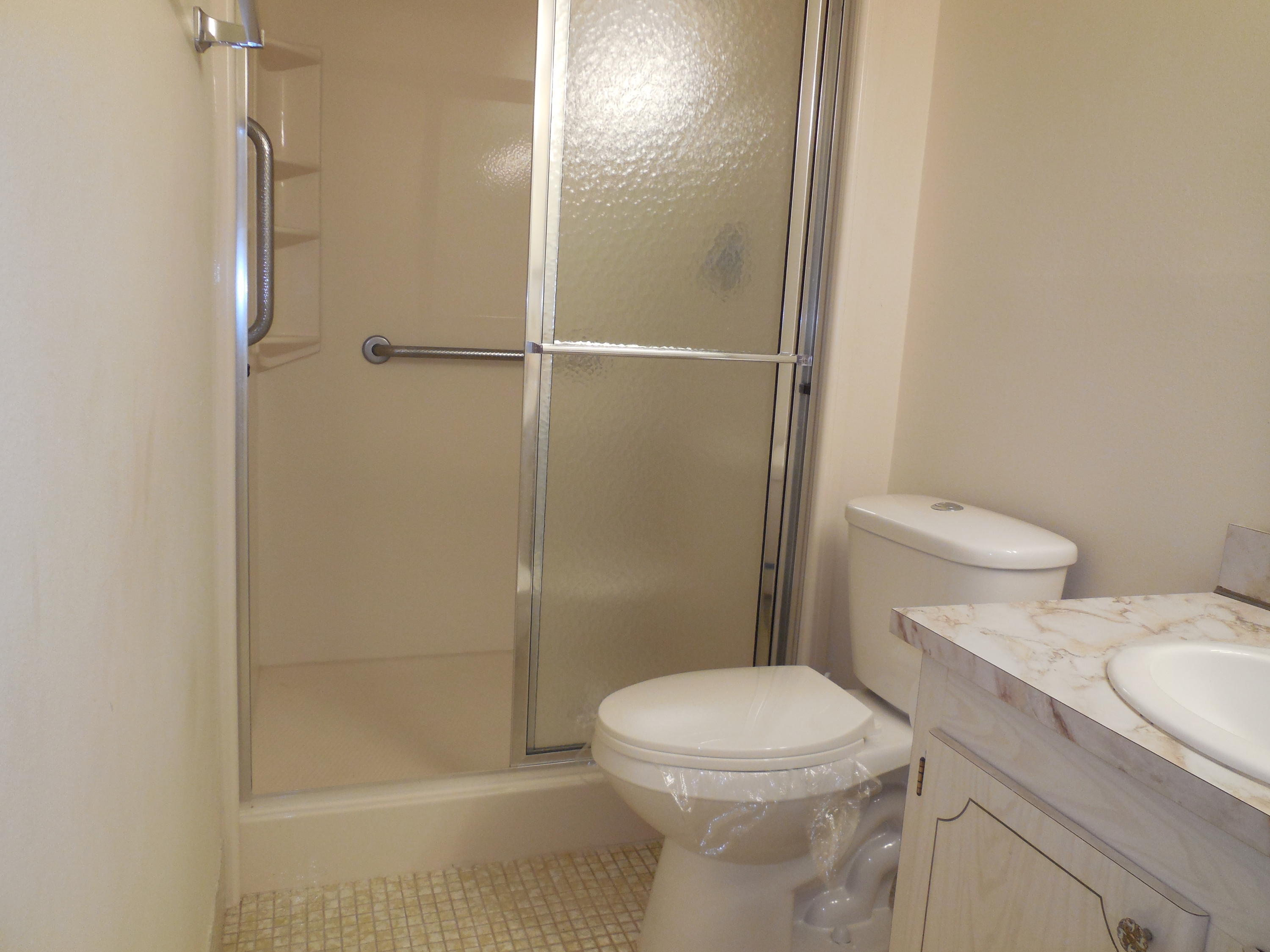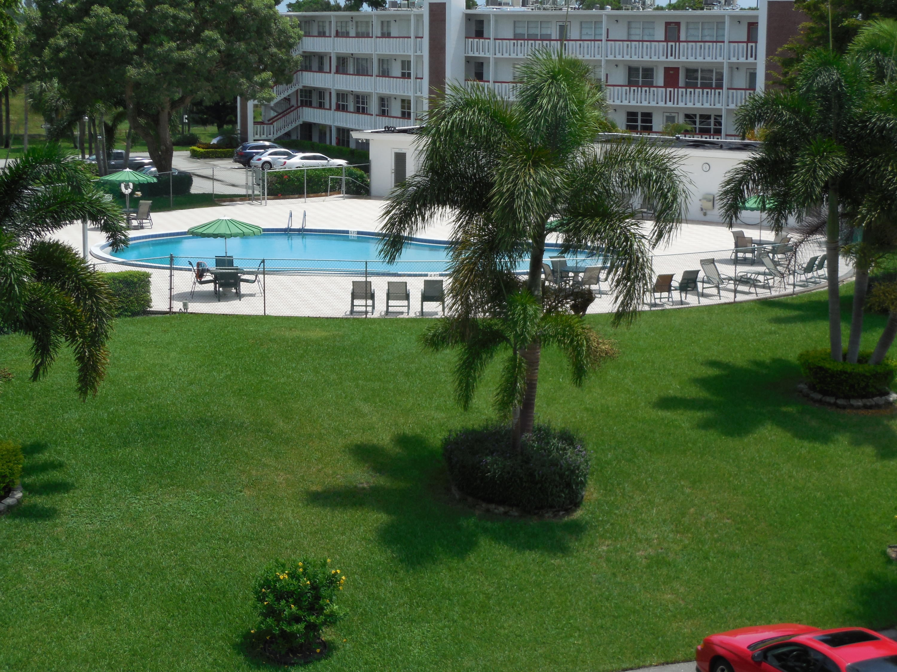 55+ resort community. Spacious 2 bedrm, 2 bath. Desirable Greenbrier building, located conveniently close to both gates. Improvements made in 2015: laminate flooring throughout living, dining and master bedroom. Patio: new tile, windows, remote controlled ceiling fan, Levolor blinds and paint. Bathroom: shower enclosure and both toilets replaced with comfort height, low-flow models. Digital thermostat, ice maker water hose, and water heater were also replaced in 2015. Dishwasher installed 2016. Second bedroom is equipped with a Murphy style Queen-size bed and remote controlled ceiling fan. An enclosed patio off the bedrooms overlook a grassy field and open views. Front faces pool. Accordion hurricane shutters front and rear. Annual A/C service. Convenient to everything in South Florida.