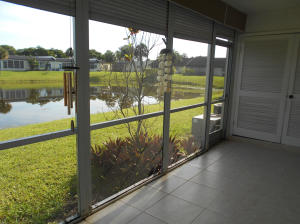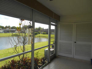LOVELY 2 BEDRM VILLA, 2ND BEDRM/DEN OPEN TO LIVING RM, TWO FULL BATHS, LT & BRIGHT , ALL FRESH PAINT,NO WALLPAPER. NEW TILED FLOORS THRU OUT ! UPDATED KITCHEN !NEW WINDOW TREATMENTS & NEW CARPET IN MASTER ONLY. COMES FURNISHED IF YOU WANT! NEW WATER HTR 2012.NEW GARBAGE DISPOSAL & NEW STAINLESS STEEL APPLS IN THE KITCHEN 2013. NEW TILED PATIO W/UTILITY CLOSET & FULL SIZE WASHER & DRYER, ROLL DOWN STORM SHUTTERS & BEAUTIFUL WATER VIEW! LOCATED JUST AROUND THE CORNER TO CLUBHSE B & ALL THE AMENITIES, GYM, POOL, SPA HOT TUB, CAFE FOR BREAKFAST & LUNCH. SOCIAL DIRECTOR TO KEEP YOU BUSY & HAVING FUN WITH ACTIVITIES, SHOWS,TRIPS, CARDS, MOVIES, BINGO & SO MUCH MORE. GATED & SECURE ! LOCATED CLOSE TO SHOPPING, RESTAURANTS & TURNPIKE! AIRPORT & OCEAN A SHORT DRIVE AWAY ALSO, PARADISE AWAITS !