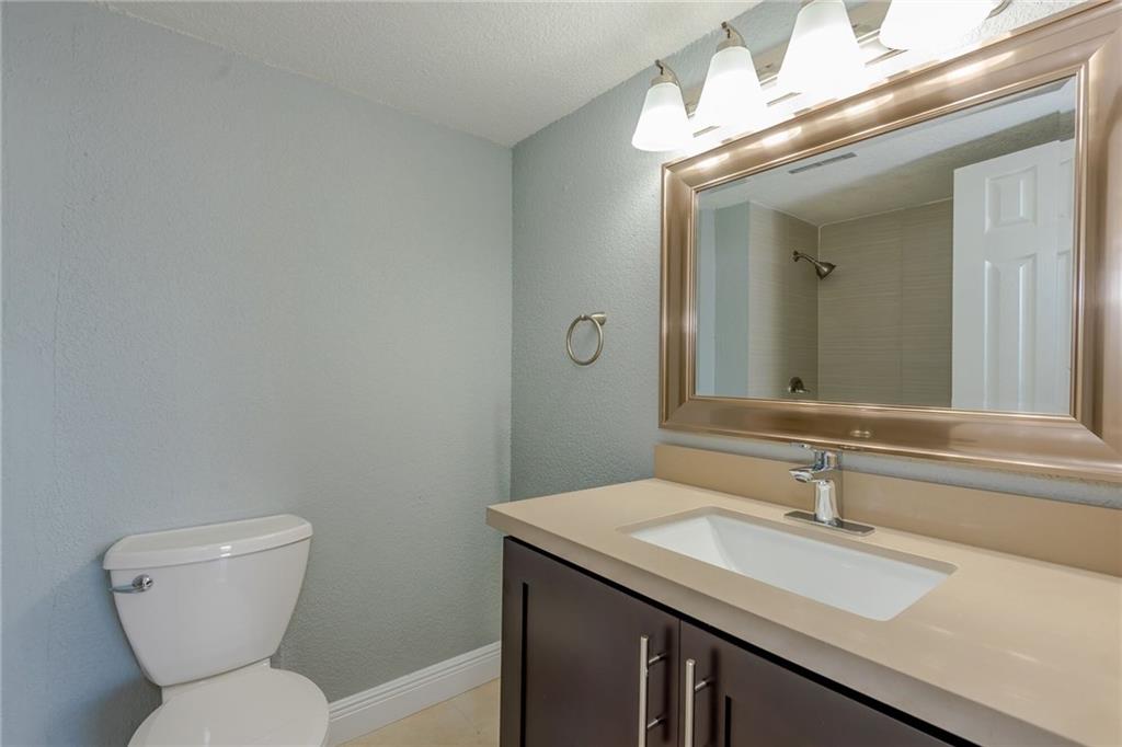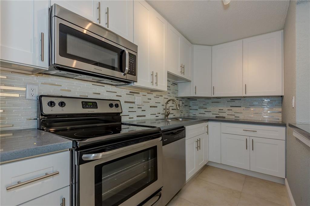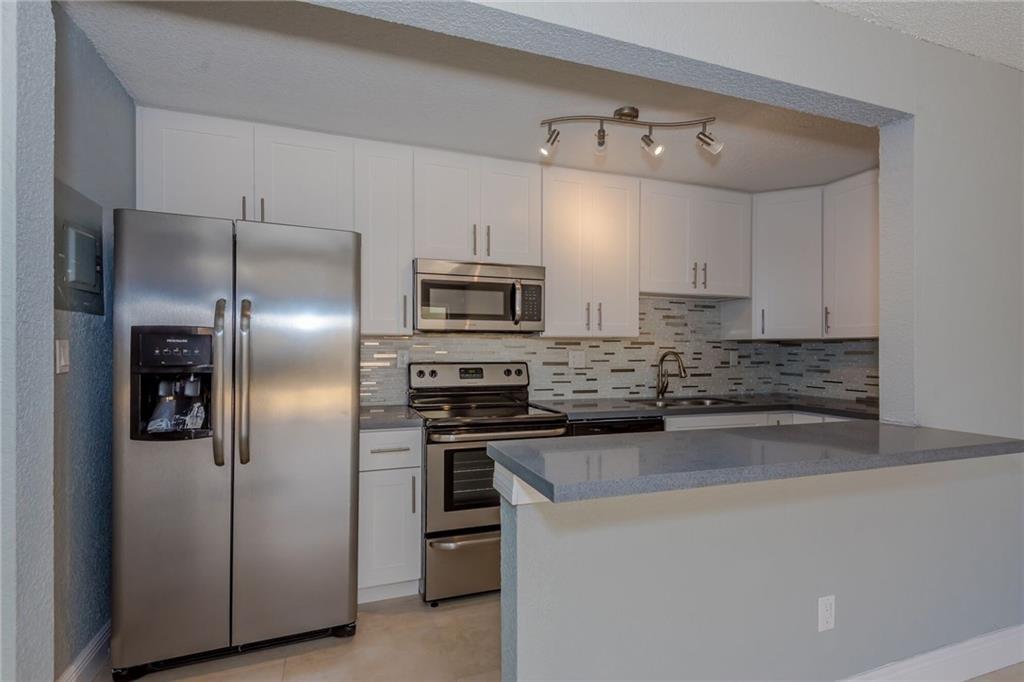 Probably the nicest unit at Doral Gardens. Completely updated first floor corner unit with extra-large patio and wood deck. Remodeled bathrooms and Updated modern kitchen with Quartz countertops & brand new stainless appliances. Wood and tile floors throughout the unit. EASY TO SHOW . Special assessment paid by the seller.