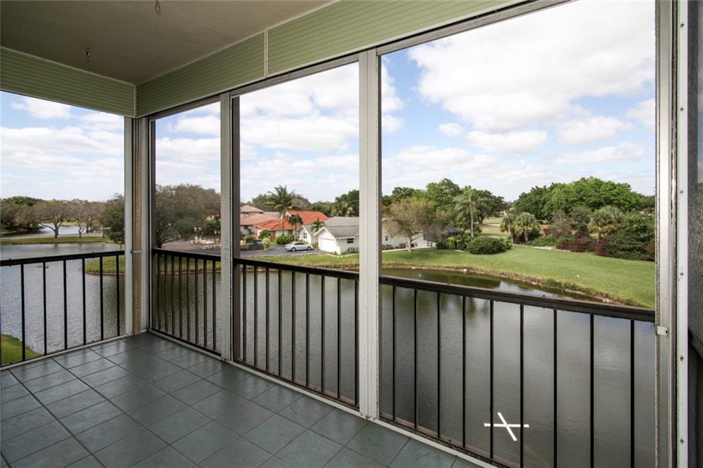 Prime location with incredible panoramic views and waterfront access! Situated in a quiet, peaceful building the spacious north facing 2/2 corner unit has a wraparound screened in shuttered balcony overlooking the lake, the heated pool and the prestigious Jacaranda Golf Club. Well maintained and move-in ready apartment features a fully equipped kitchen with pass through to dining area. Close to fitness center, hospitals. Steps to the New River Greenway bike path-jog trail. Unit is being sold furnished!