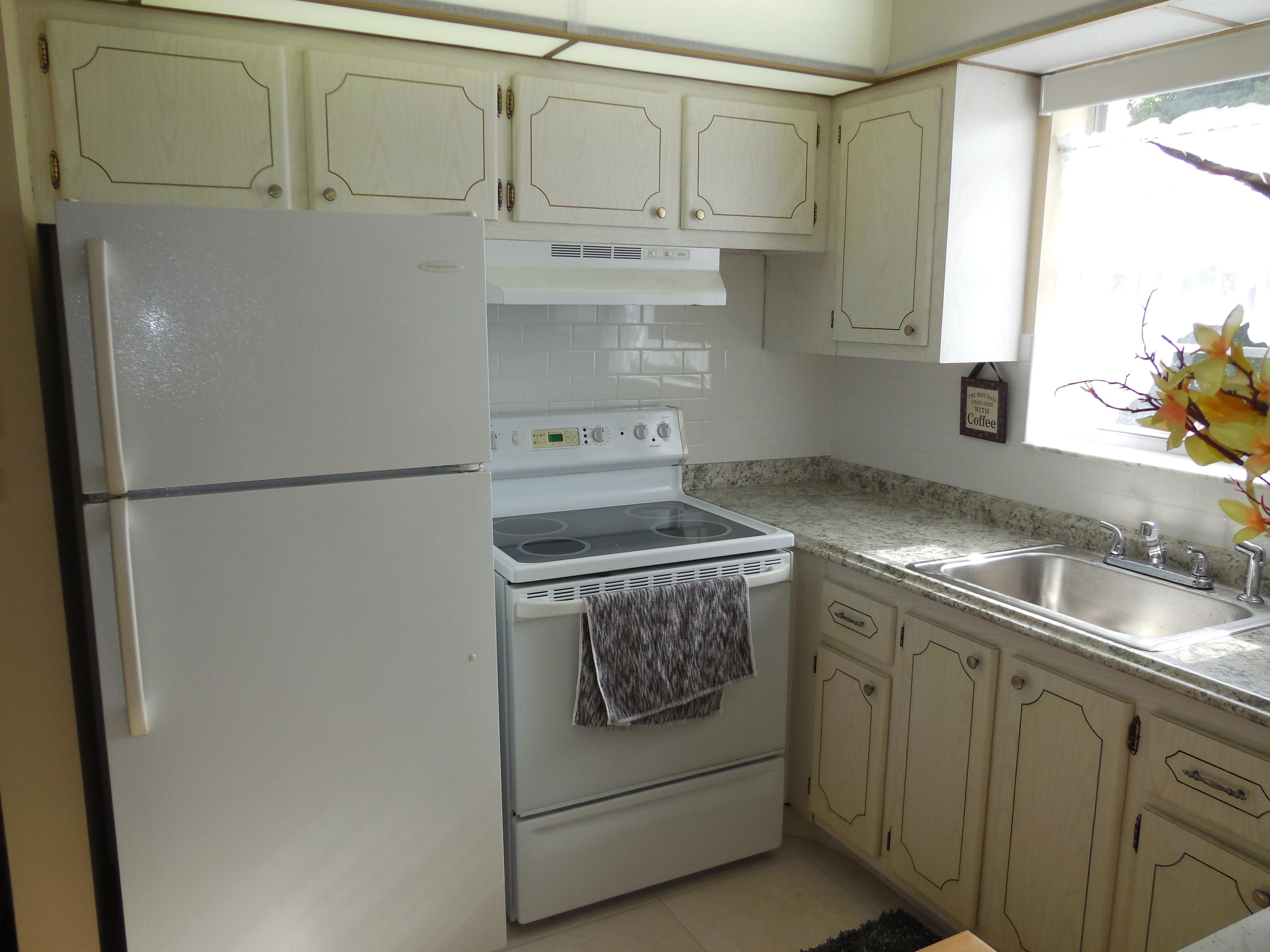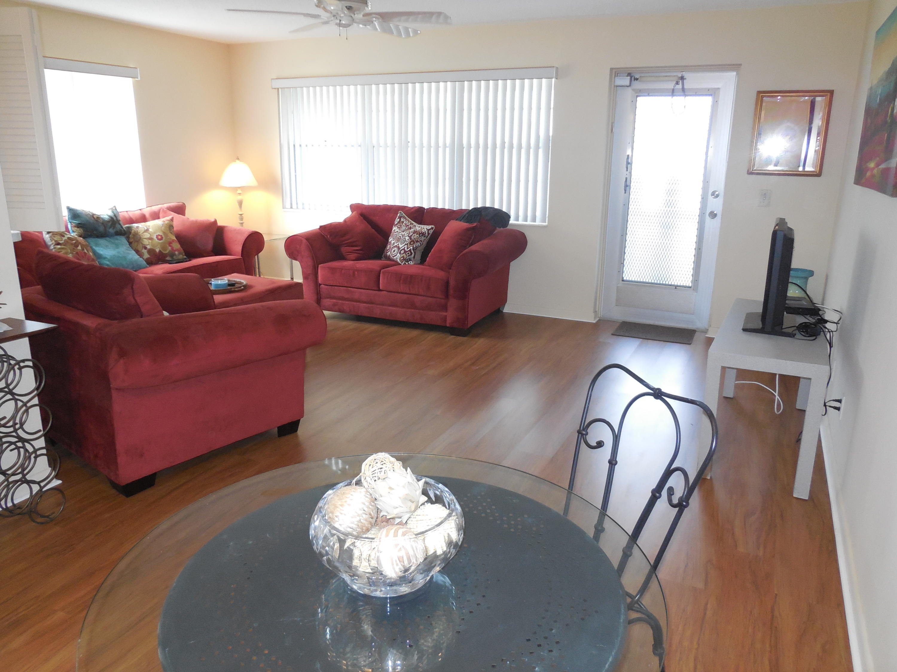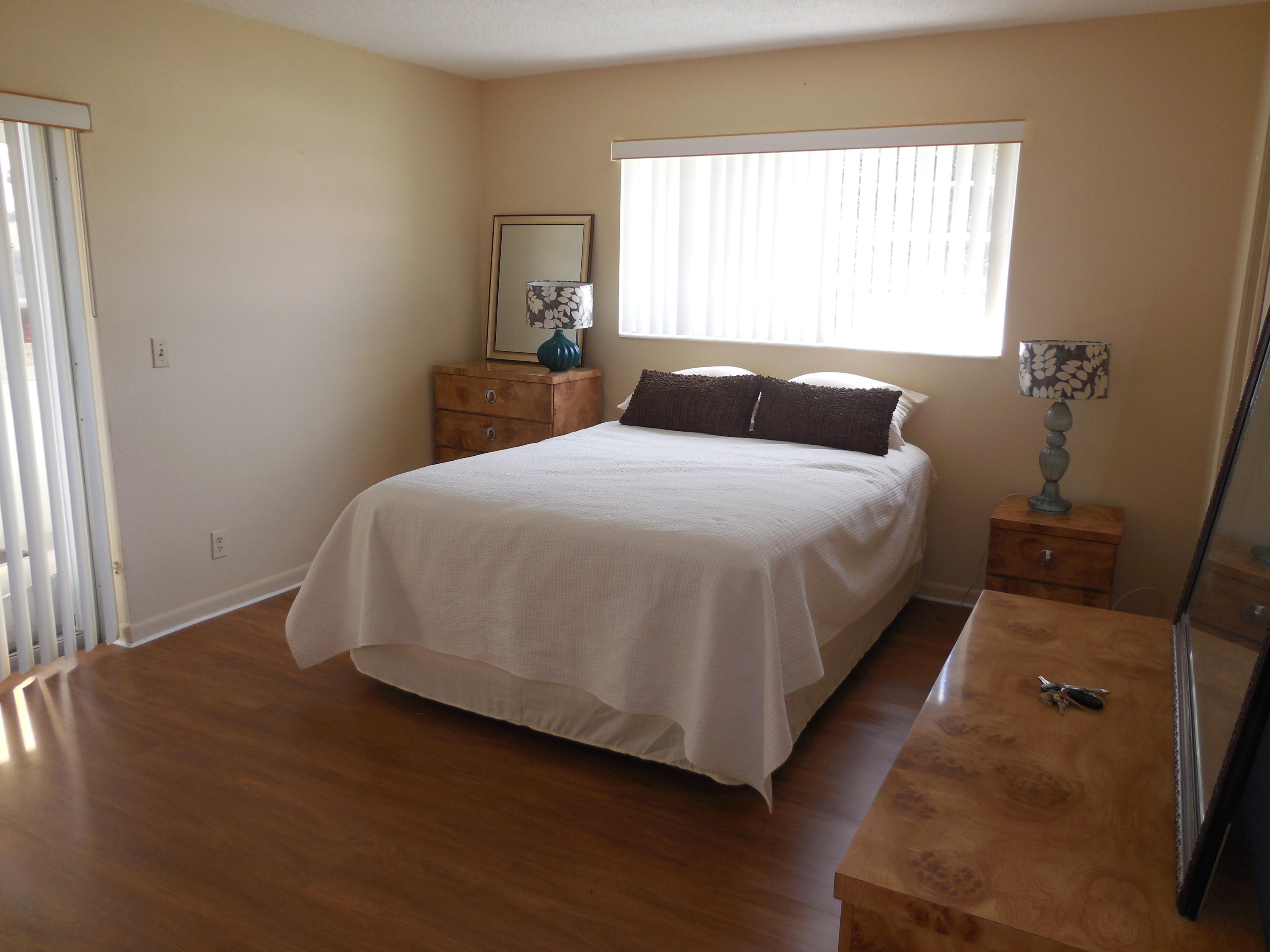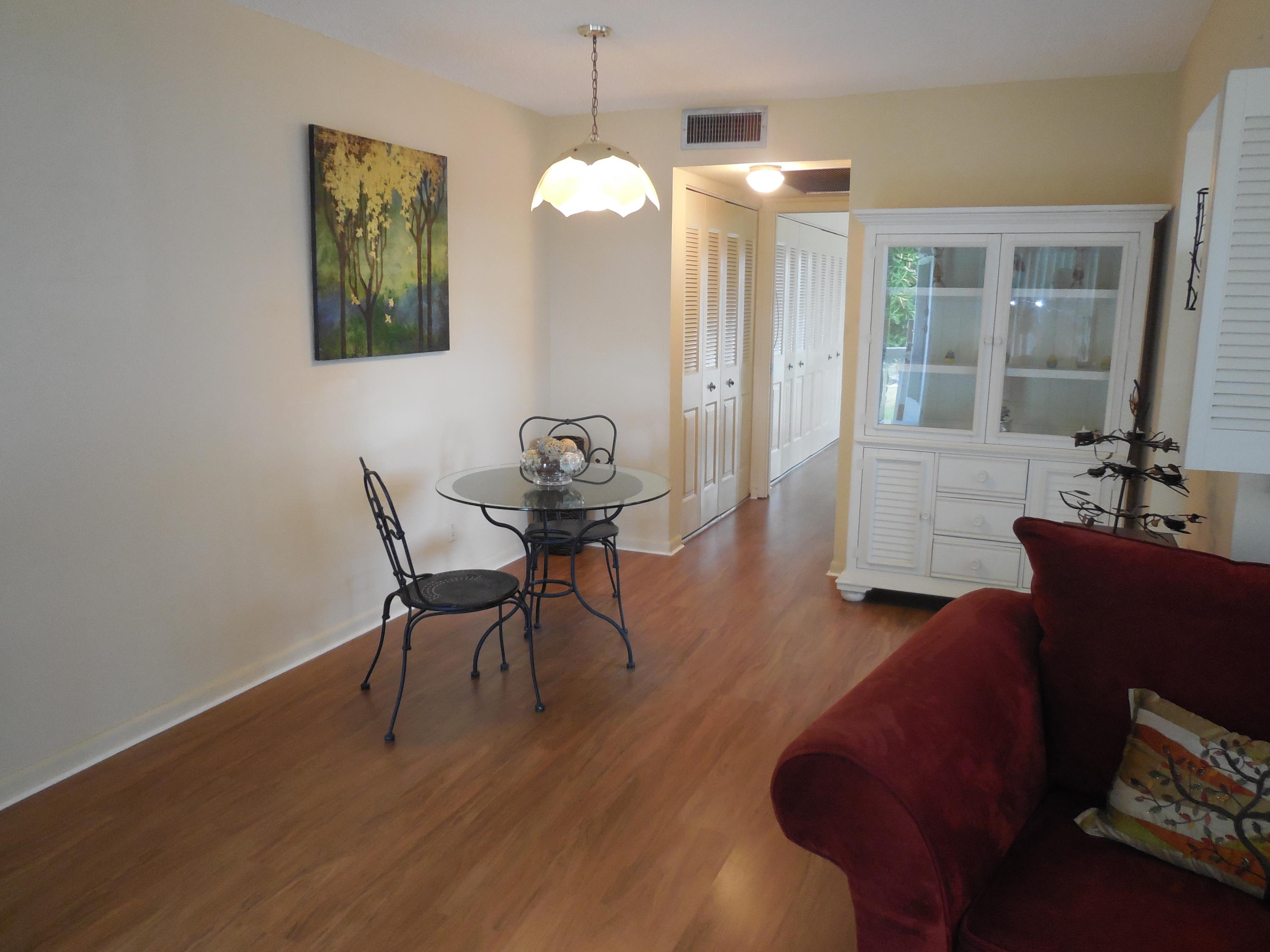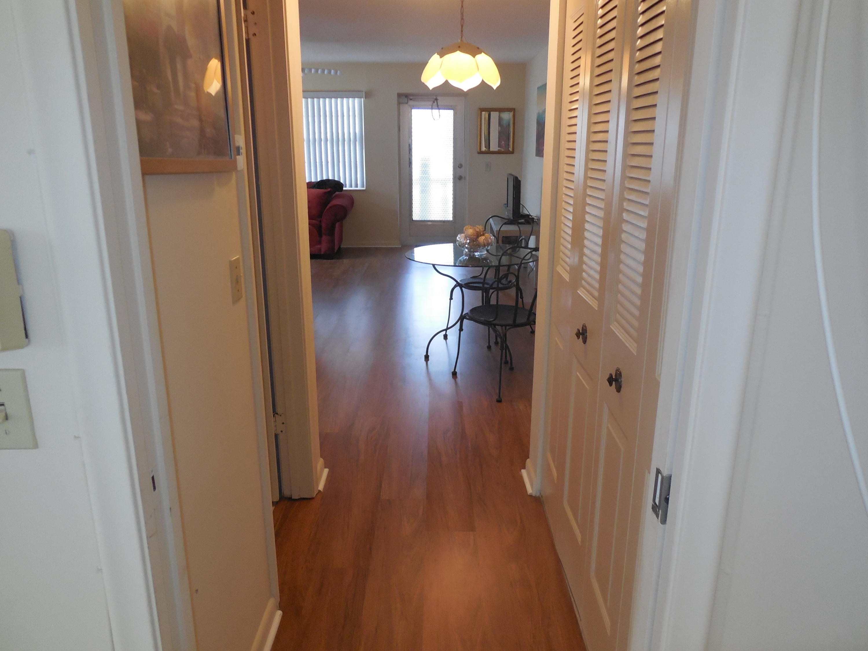 You do not want to miss seeing this beautiful one bedroom one and one half bath newly renovated second floor corner unit. Freshly installed premium laminate flooring and ceramic tile in this bright and airy condo make you feel you live in the lap of luxury. Newer water heater, central air conditioning and heat, and accordion shutters at all windows and sliding glass doors. This condo is in a very quiet part of the Village, walking distance to one of our many pools, and has a beautiful view of our lush floral vegetation.