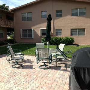 Sunny and bright with relaxing BBQ arera,excellent move right in condition. New tankless water heater, new screens in patio. Ceramic tile thruout. Very clean. Furniture is negotiable Walk to Camden HEATED pool. Just bring your toothbrush!
