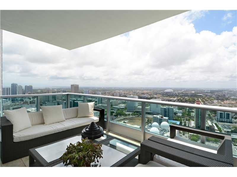 Elegant & sophisticated 50th floor corner unit. Large terraces. Panoramic views of Biscayne Bay, Ocean, Miami Bch & more. Priv. elevator foyer. Beautiful built-ins. Travertine marble floors. Floor to ceiling windows. Gourmet kitchen. Marble counters/Mosa ic backsplash. Stainless appliances. Subzero refrigerator, Miele oven, cooktop, dishwasher & microwave. Currently 2BR/3.5BA. Sep. laundry room. Easily converted to a 3BR. Full amenity luxury bldg. Pool, Spa, Clubroom, gym, garage parking. 24 hr. security.