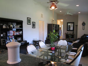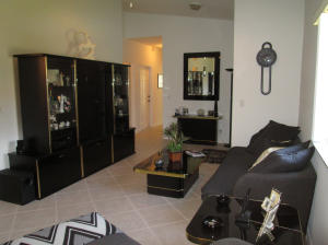 MUST SEE THIS BEAUTIFUL 3 BEDROOM 2 BATH & 1 CAR GARAGE CORNER VILLA WITH STUNNING LAKE VIEW. ENJOY THE VIEW WHILE SITTING IN COVERED SCREENED IN PATIO WITH CEILING FAN. THIS HOUSE HAS IT ALL. ACCORDIAN SHUTTERS, DIAGONAL TILE THROUGOUT HOME, CARPET IN BEDROOMS. KITCHEN HAS GRANITE COUNTERS, FLAT TOP STOVE, UPGRADED REFRIGERATOR AND MICROWAVE. THIS IS A GATED & GUARD MANNED GATED COMMUNITY. CLUBHOUSE FEATURES 3 LARGE POOLS, INCLUDING 1 RESISTANCE POOL, AND HUGE JACUZZI CAN FIT UP TO 12. COMMUNITY ALSO OFFERS MEDIA ROOM, CARD ROOM, BILLIARD ROOM, EVENT ROOM WITH STAGE THAT CAN BE RENTED OUT FOR PARTIES, WEDDINGS, ETC. HOLDS UP TO 200-250 PEOPLE. CLOSE TO WELLINGTON MALL & PALM BEACH POLO & EQUESTRAIN AREA. TURNPIKE JUST 5 MIN AWAY. WPB AIRPORT JUST 15 MIN AWAY. FURNITURE IS AVAILABLE.