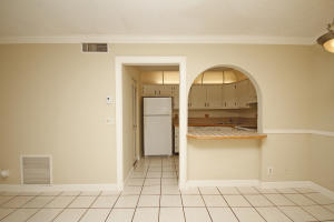 DESIRABLE 1ST FLOOR UNIT IN WELL MAINTAINED GATED COMMUNITY. NEUTRAL TILE IN GREAT ROOM, KITCHEN, LAUNDRY ROOM AND BATH WITH WOOD LAMINATE FLOORING IN BEDROOMS. NEWER A/C (2012). KITCHEN HAS UPGRADED TILE COUNTERTOPS AND OPEN ARCHWAY TO BREAKFAST BAR, CROWN MOLDING IN GREAT ROOM. LARGE LAUNDRY ROOM OFF OF KITCHEN WITH PANTRY. BATHROOM WALL TILE, VANITY, MIRROR AND LIGHT FIXTURES UPDATED. LOVELY SCREENED PATIO WITH OUTDOOR STORAGE ROOM. THIS COMMUNITY IS WELL KEPT AND HAS A POOL, TENNIS COURTS, RAQUETBALL COURT AND MORE. THIS HOME IS IN GREAT CONDITION AND IS MOVE-IN READY. CLOSE TO AIRPORT, SHOPPING, CITY PLACE AND BEACHES. WHAT MORE COULD YOU WANT? MAKE YOUR APPOINTMENT TODAY. YOU DON'T WANT TO MISS THIS ONE! ALL SIZES ARE APPROXIMATE AND SHOULD BE VERIFIED BY BUYER.