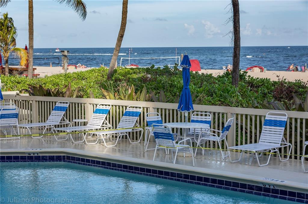 WOW! PRICE REDUCED AGAIN! Ocean front - This exceptional, most beautiful condo in the building is available with stylish decor. A beach home, corner unit with NE views towards the Hillsboro Lighthouse, ocean, coastal & city lights. A complete, 1st class remodel done in 2008-2009 with nothing spared. The building is a smaller, boutique style that has been upgraded. A pool facing the ocean with private entry to beach, club room, gym and billiard room for your entertainment. Furniture negotiable. Low Dues.