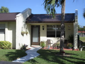 Wow, a must see. Remodeled corner 2/2 villa with formal dining area, eat-in kitchen, hard wood flooring, new A/C, new electrical wiring, remodeled kitchen and new enclosed patio with impact windows. Plus many other updates. Great location with N/S exposure and short walk to clubhouse. A mini-resort with heated Pool, Gym, Tennis, Jacuzzi. Full time social director schedules shows, trips, movies. Courtesy bus 2 days a wk to shops, grocery, malls etc. Approx 25 min to the Beach, 15 min to downtown WPB, Kravis Center for Performing Arts and City Place. 24/7 Guard gated 55+ community. Come Discover Golden Lakes Village.