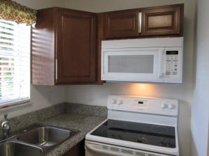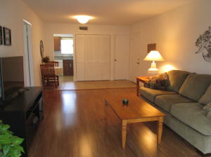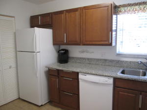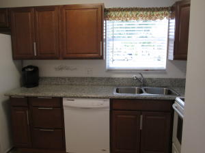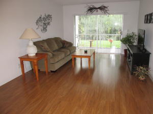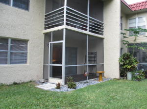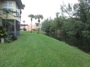 Lovely remodeled corner 1st floor condo with screened patio, garden view and interior canal. A/C installed 2015, laminate wood and tile floors, updated half bath and master bath with newer vanity and toilets. Bright kitchen with window, granite counter and wood cabinets. Lg walk-in pantry for storage.New 5'' baseboards. Nothing to do, move right in. 55+ guard gated active community with full time social director, courtesy Bus two days a wk to grocery, malls, shops etc. Approx 15 min to downtown City Place, & Kravis Center for Performing Arts. Approx 25 min to the Beach. Clubhouse has Pool, Hot Tub, Gym, auditorium, card room, library and Billiards room. On site manager M-F. Come Discover Golden Lakes Village.
