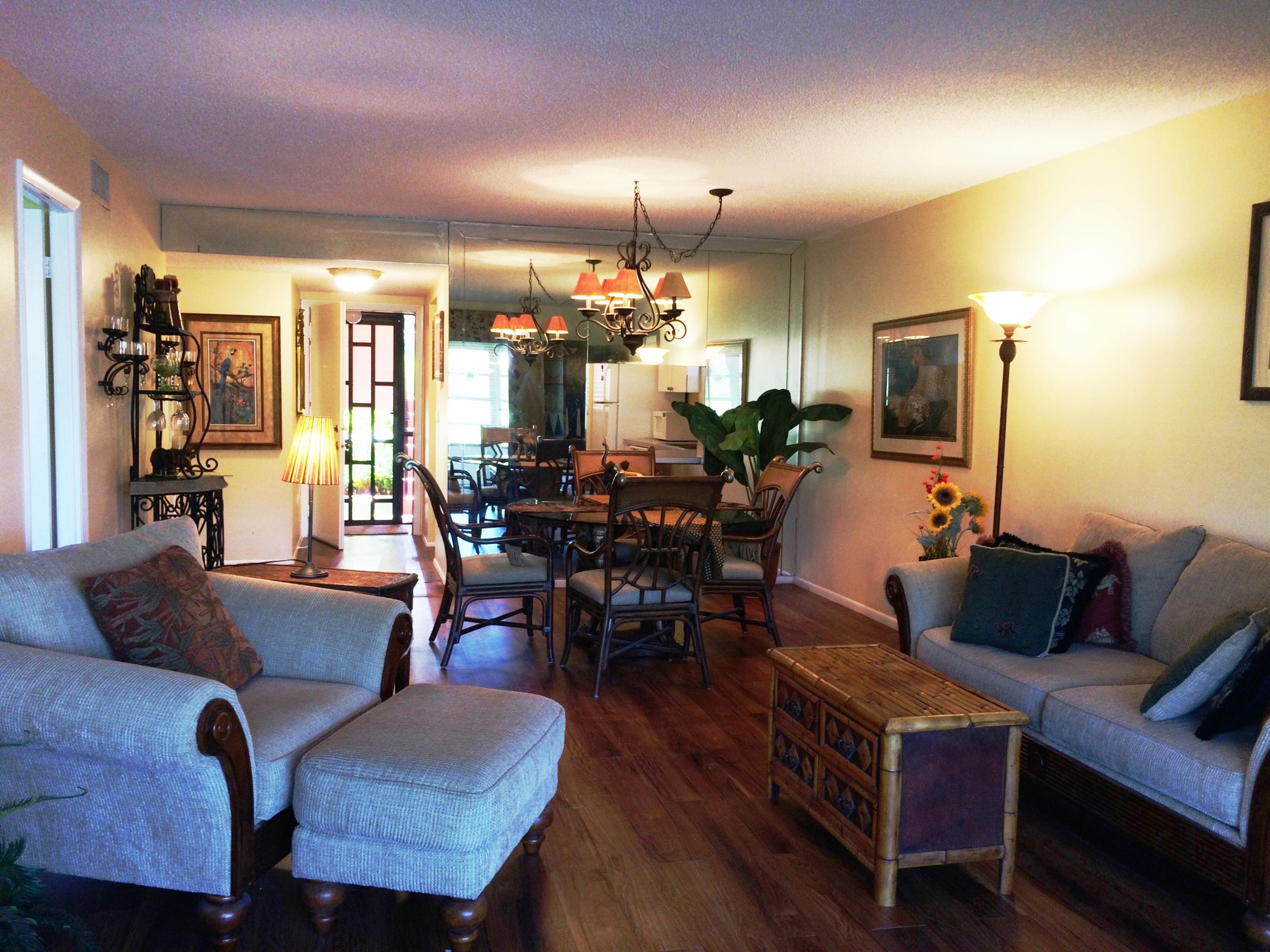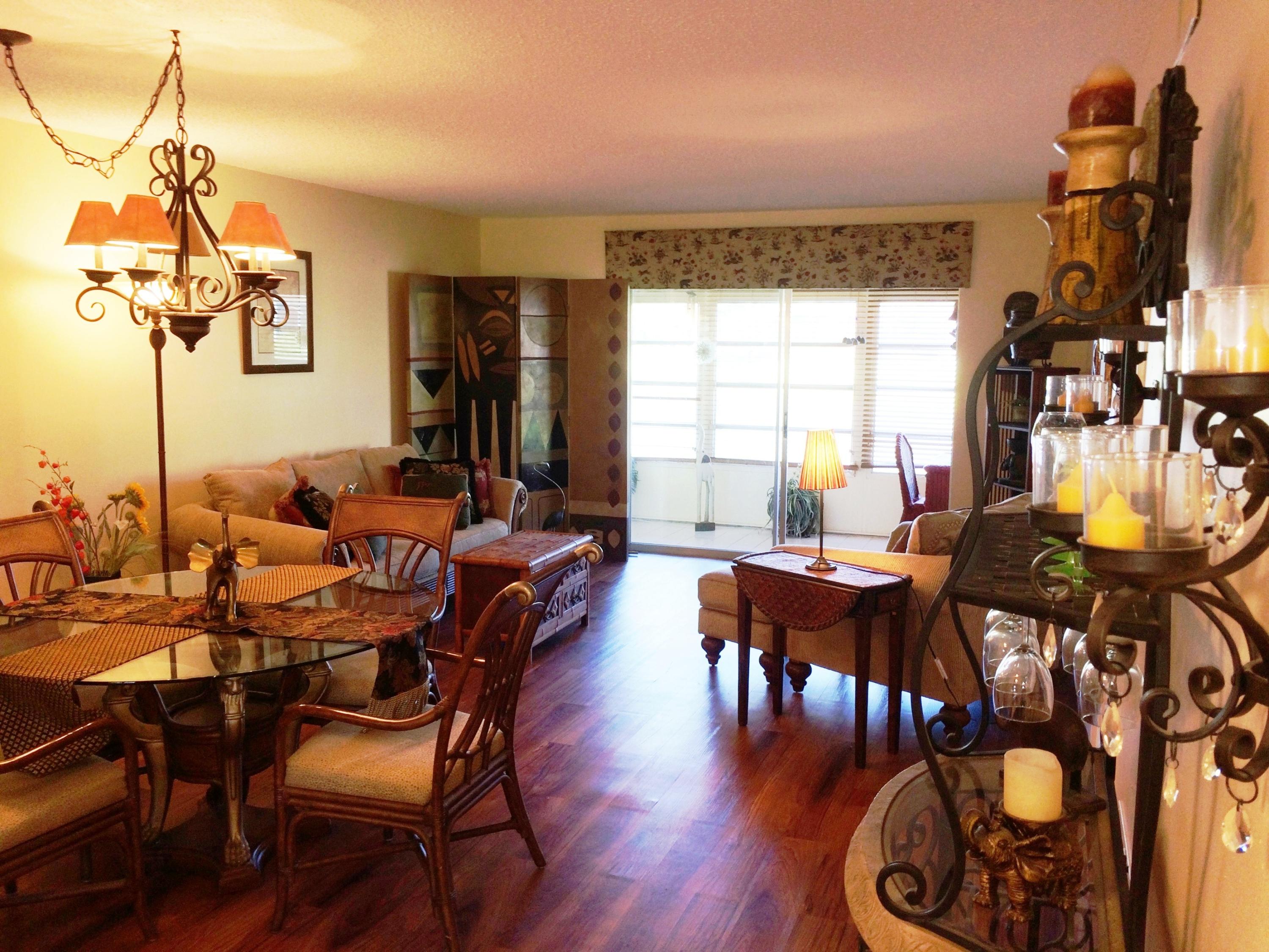 WHAT !!!! Reduced by $14K for a quick sale! 1st floor Condo New Wood Laminate Floor in Kitchen, Living room & both bedrooms. SELLER Willing to compensate for cost to Install BRAND NEW WASHER and DRYER! - Move In Ready EVERYTHING INCLUDED ! Wood Window Shades. Master Bedroom: Bed & Furniture, 2nd Bedroom has Pull Out Sofa & TV Enclosure w/ TV. Glass Top Range, Kitchen Table & Chairs. LivingRoom Sofa Chair Ottoman - Enclosed Florida Room has wonderful view of the lake. steps away from satellite pool. Very Active Community with PLENTY to do. Never a Dull Day - Included Amenities, Fitness Center / 2 Pools / Spa-HotTub / Game Room / Billiards /Shuffle Board / Tennis / Courtesy Bus & the Cafe serves Breakfast and Lunch! Close To Everything, Shopping, Theaters:Kravis Center 4 Performing Arts !